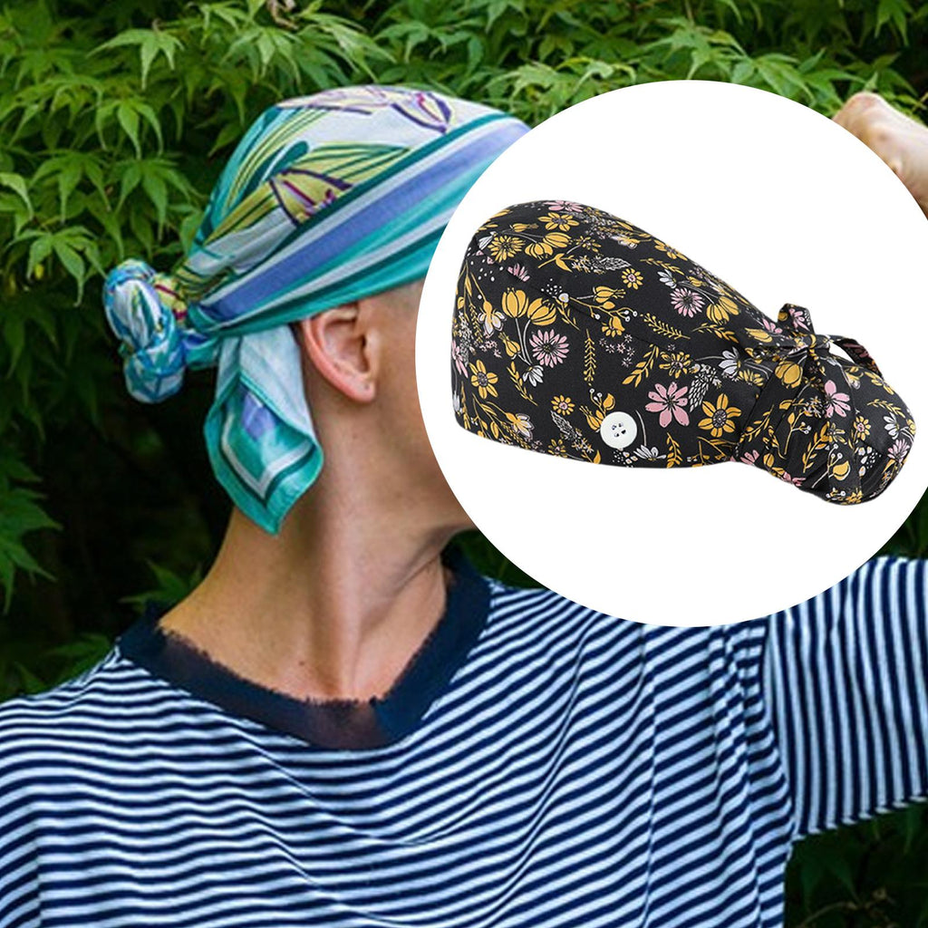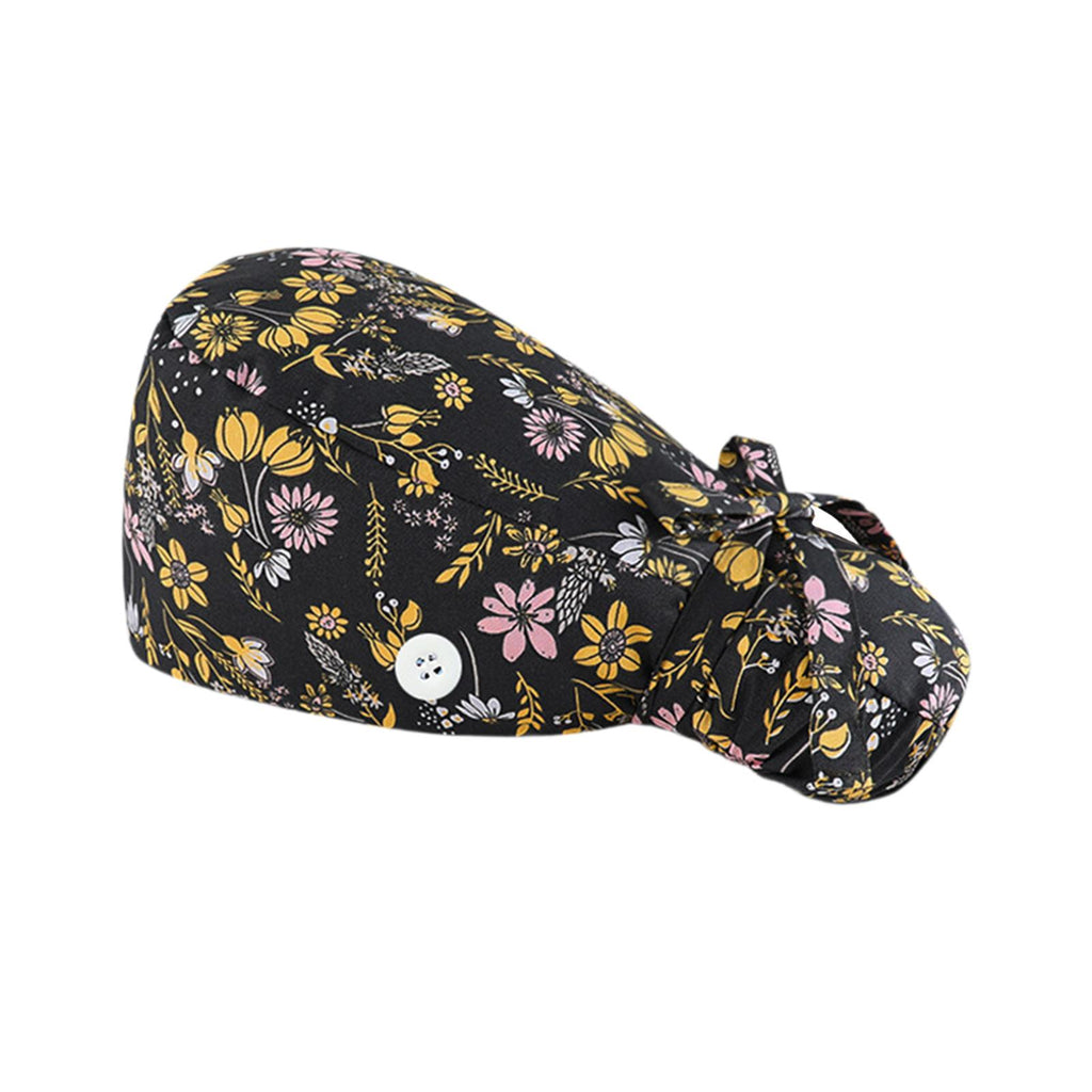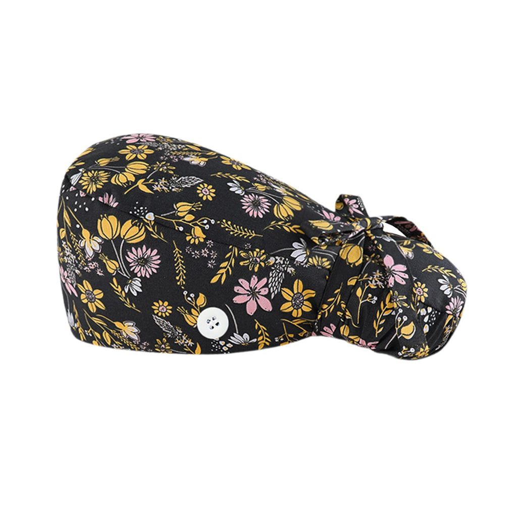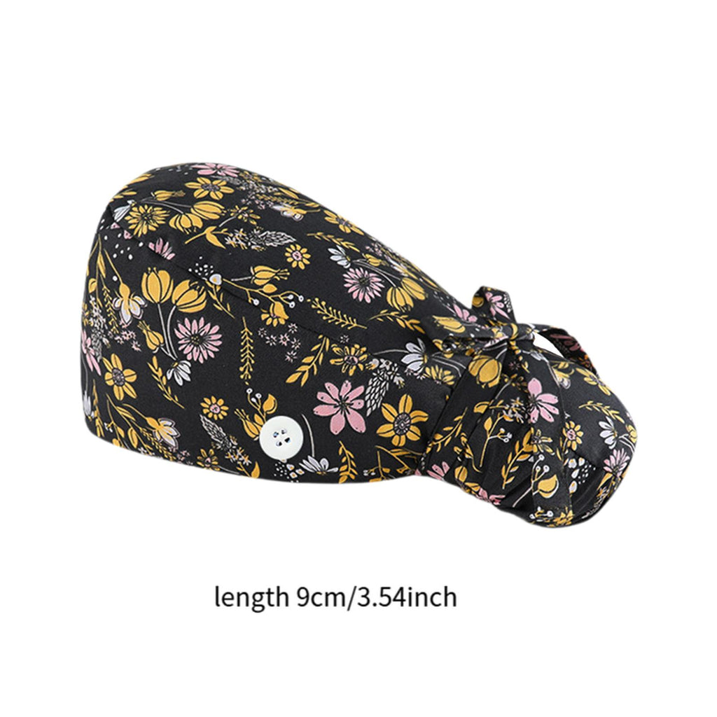 【Adjustable Fit】: Designed with an adjustable elastic band and ties, our printed scrub cap ensure a snug fit for various head sizes and hairstyles. The convenient side buttons make wearing a mask effortless, providing added comfort during extended use
