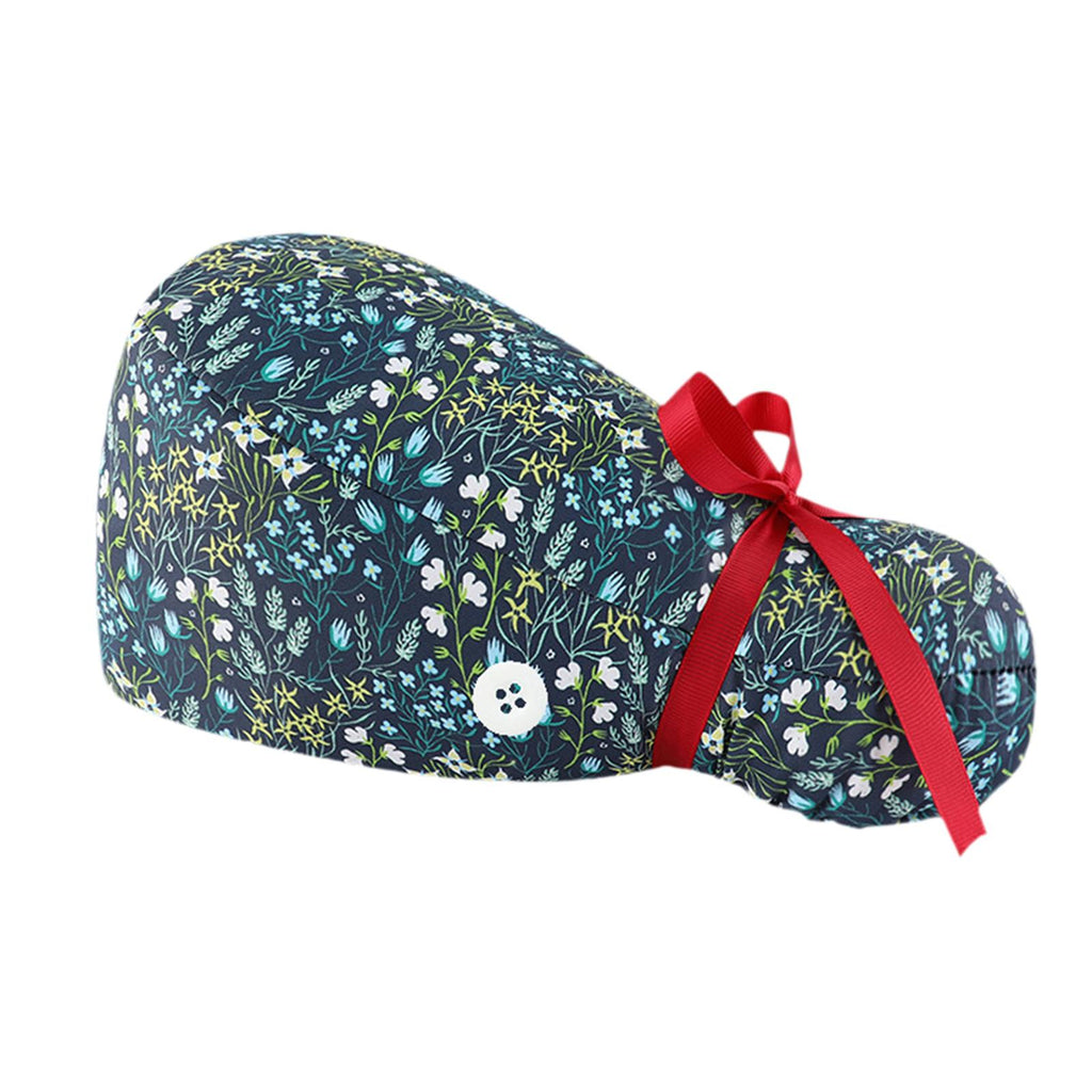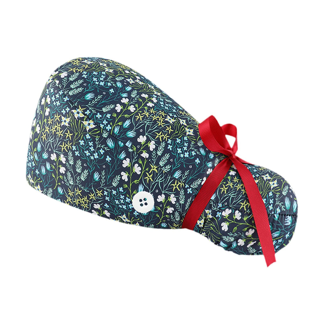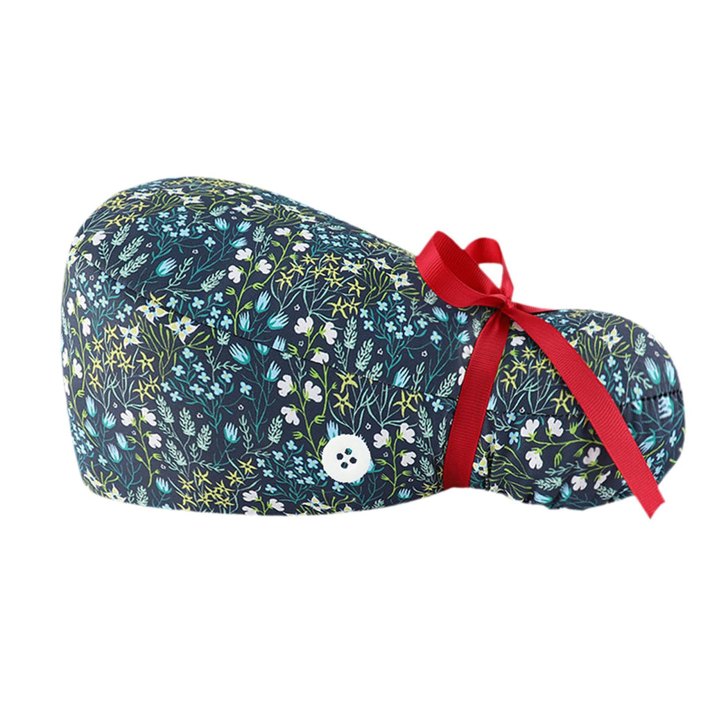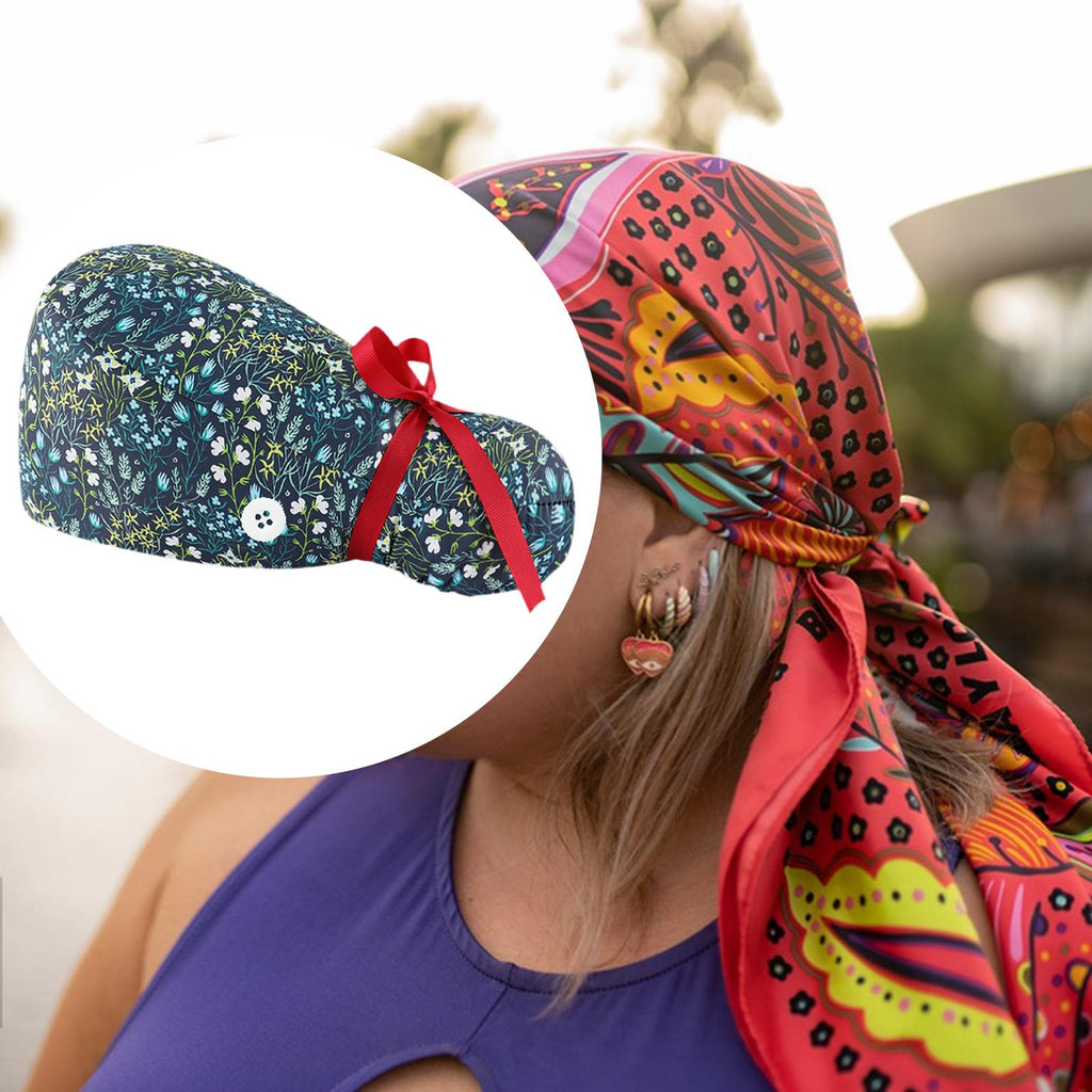 【Adjustable Fit】: Designed with an adjustable elastic band and ties, our printed scrub cap ensure a snug fit for various head sizes and hairstyles. The convenient side buttons make wearing a mask effortless, providing added comfort during extended use