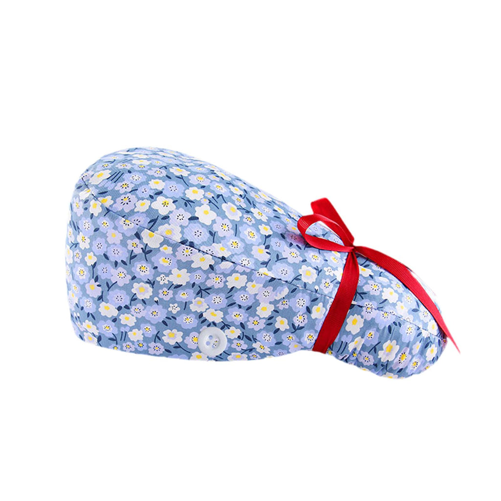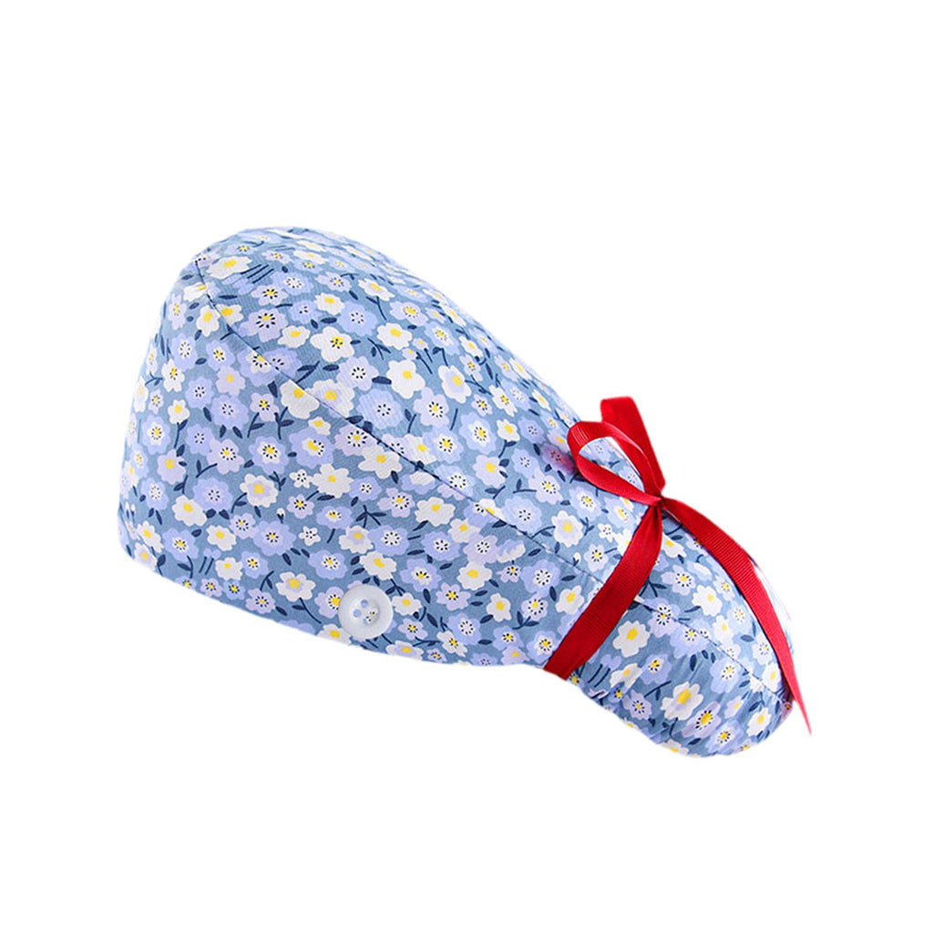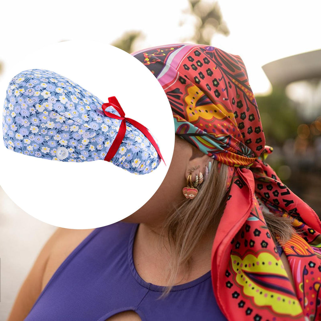 【Adjustable Fit】: Designed with an adjustable elastic band and ties, our printed scrub cap ensure a snug fit for various head sizes and hairstyles. The convenient side buttons make wearing a mask effortless, providing added comfort during extended use