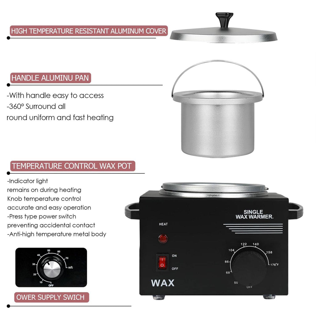 - 【Versatile Design】: Wax Melter Warmer is suitable for hair removal on hands, feet, face, and body; compatible with hard wax, soft wax, jar wax, and wax beads