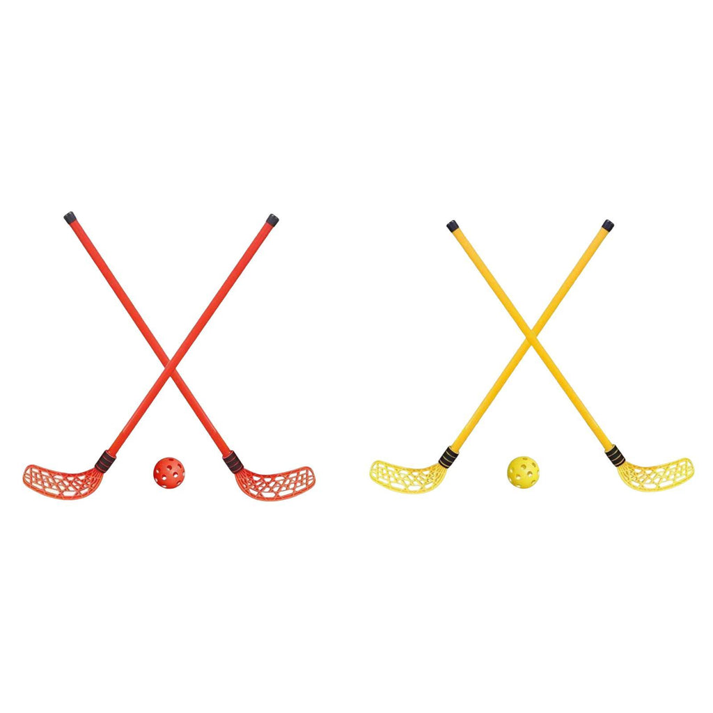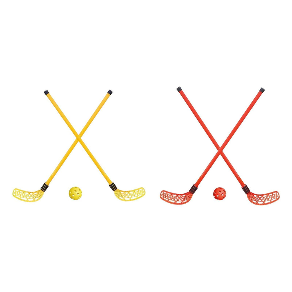 Maxbell Kids Hockey Sticks and Ball Set Sensory Toy for Sports Indoor Party Supplies Red