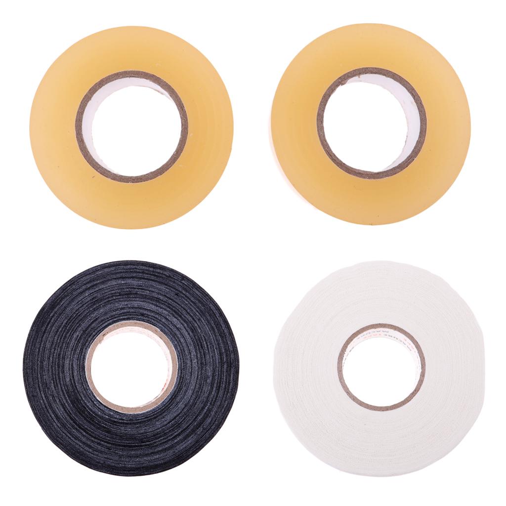 4 Rolls of Hockey Stick Tape (1 Black Roll ;1 White Roll; 2 Transprent Rolls)
