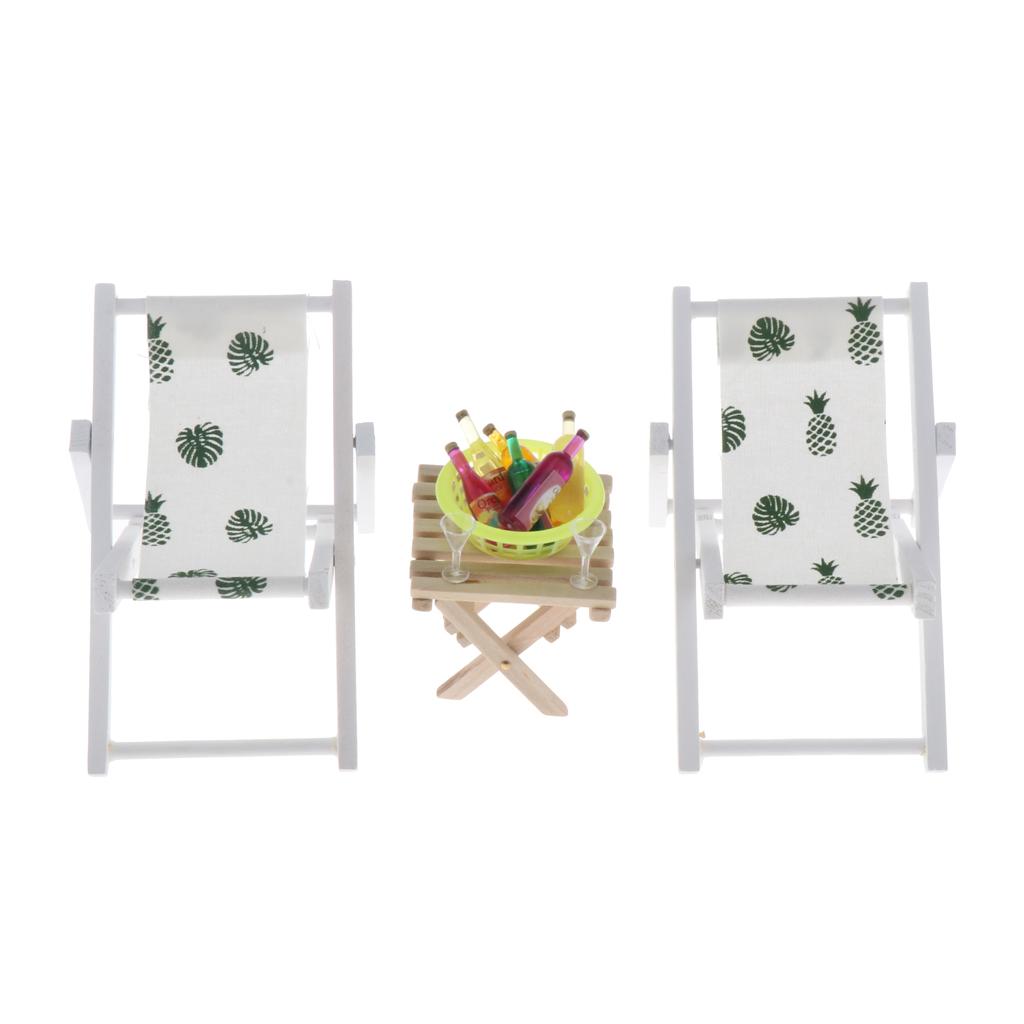 Maxbell 1/6 Dollhouse Miniature Lounge Chair Table with Wine Beach Set Decor Green