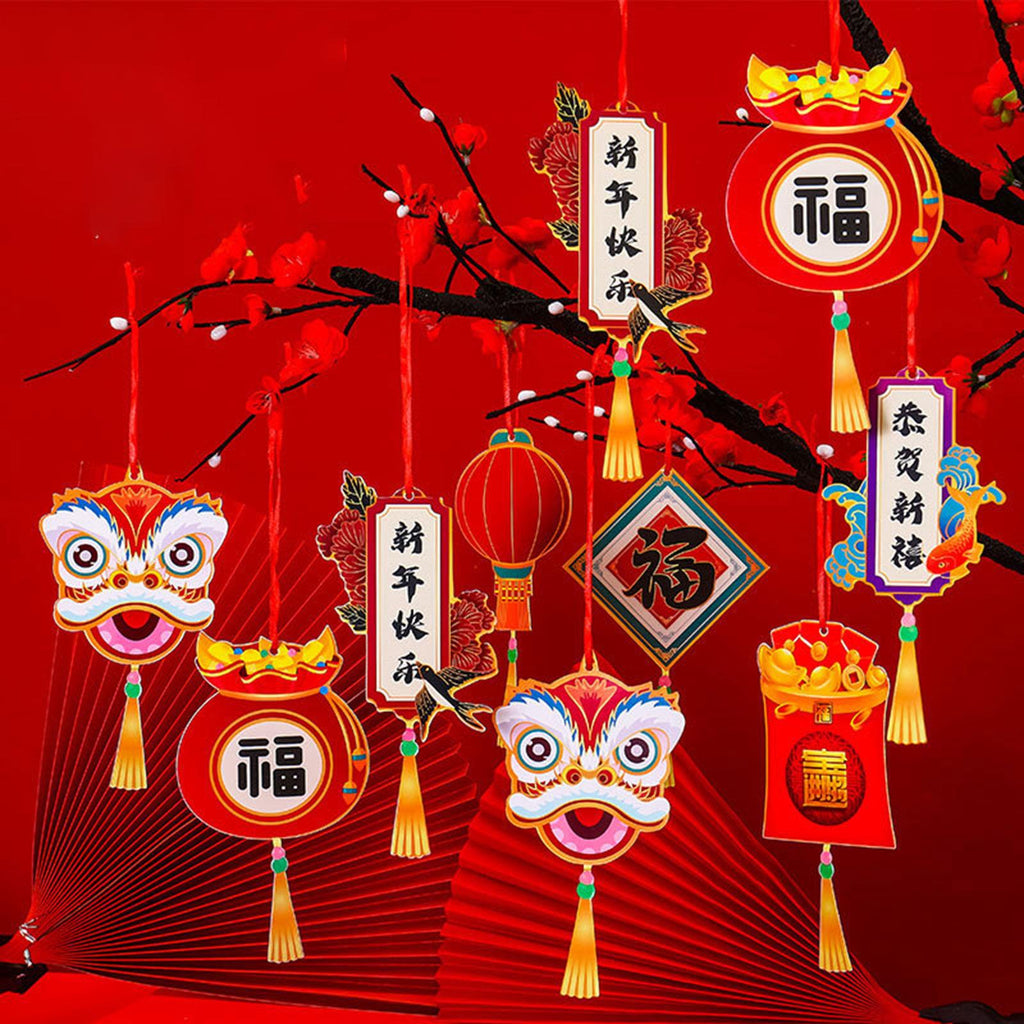 Design: These Chinese New Year hanging ornaments are designed in New Year theme patterns such as the lion dance, fu, lantern and other Chinese lucky characters, red is the main color, various styles and bright colors.