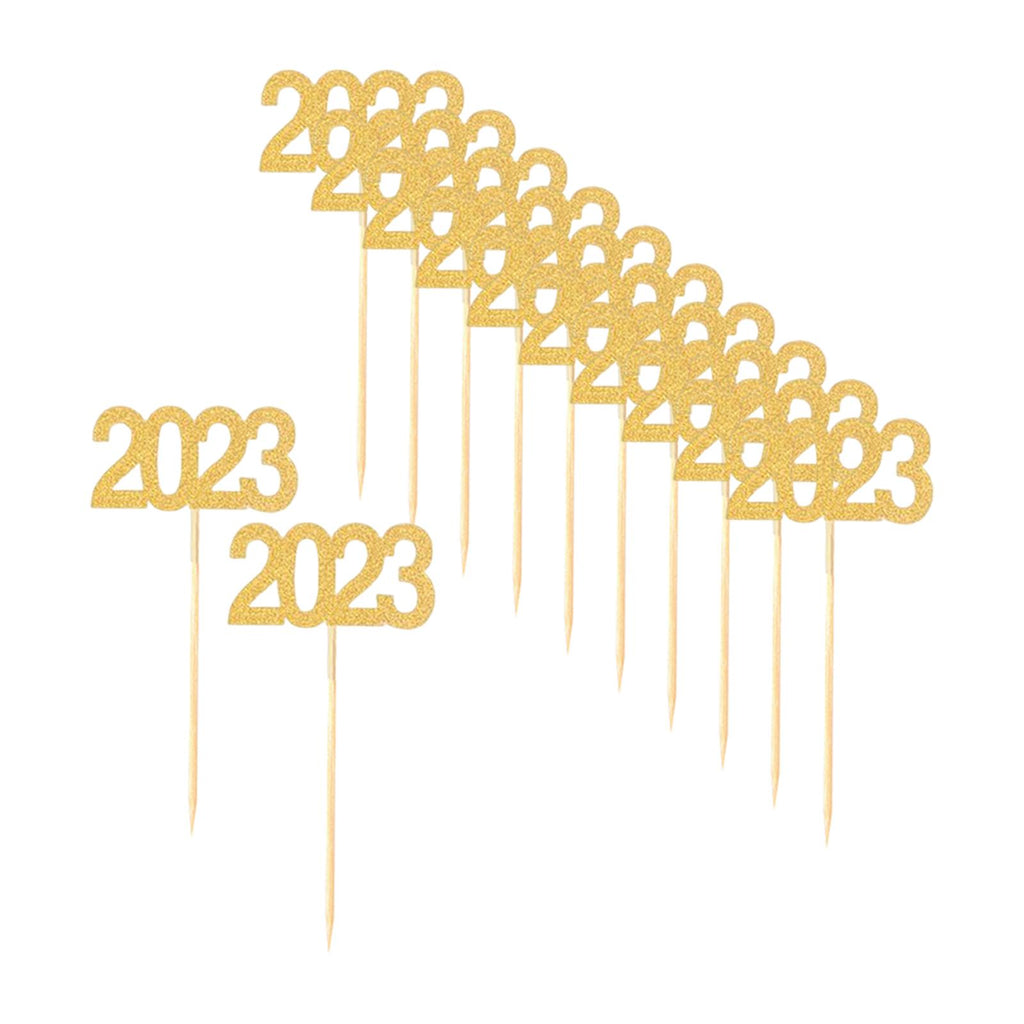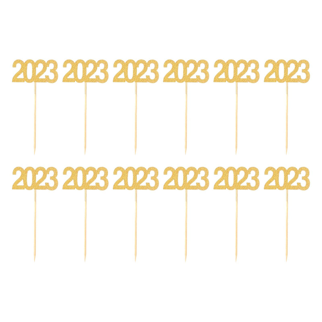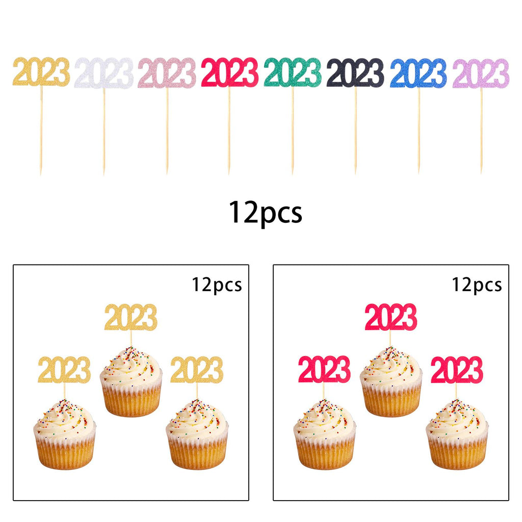 Maxbell 12Pcs 2023 Cupcake Topper Glitter for Party Decor Birthday Theme Supplies Aureate