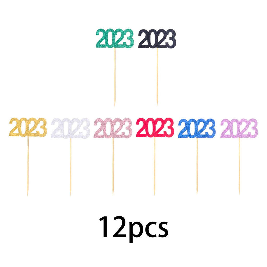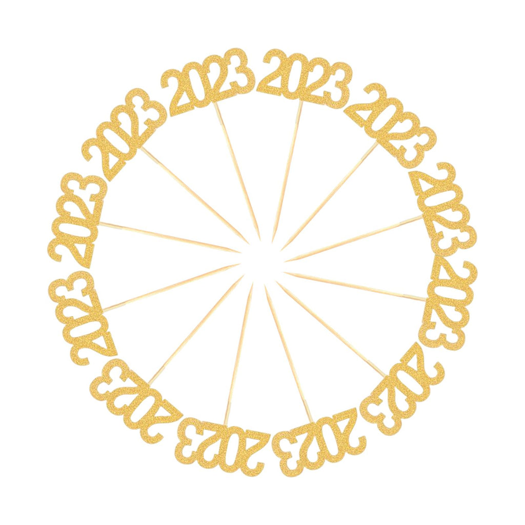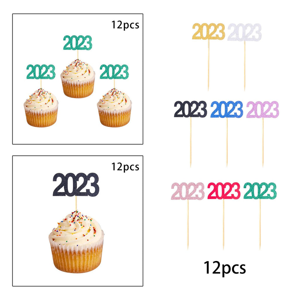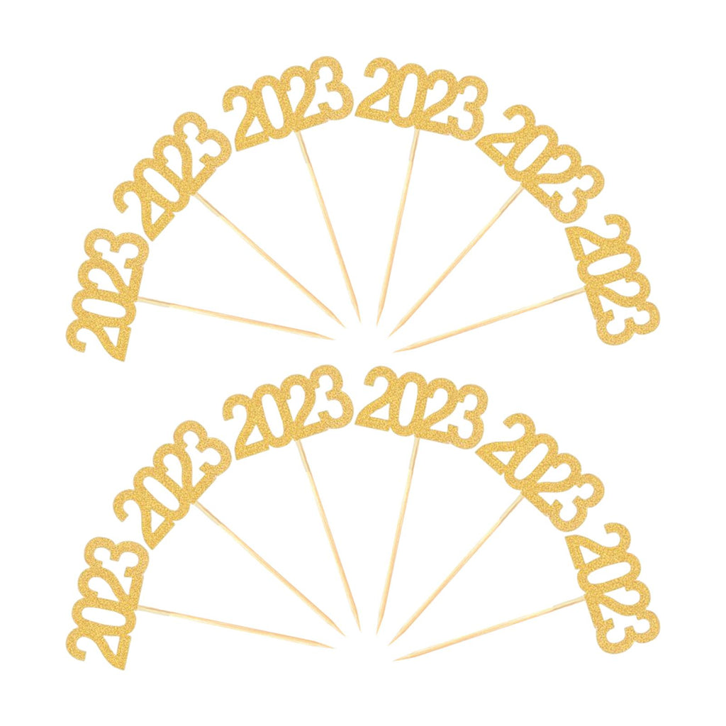 Maxbell 12Pcs 2023 Cupcake Topper Glitter for Party Decor Birthday Theme Supplies Aureate