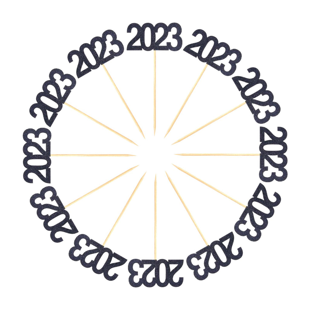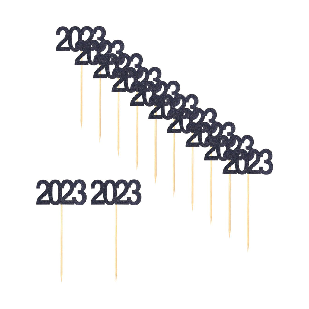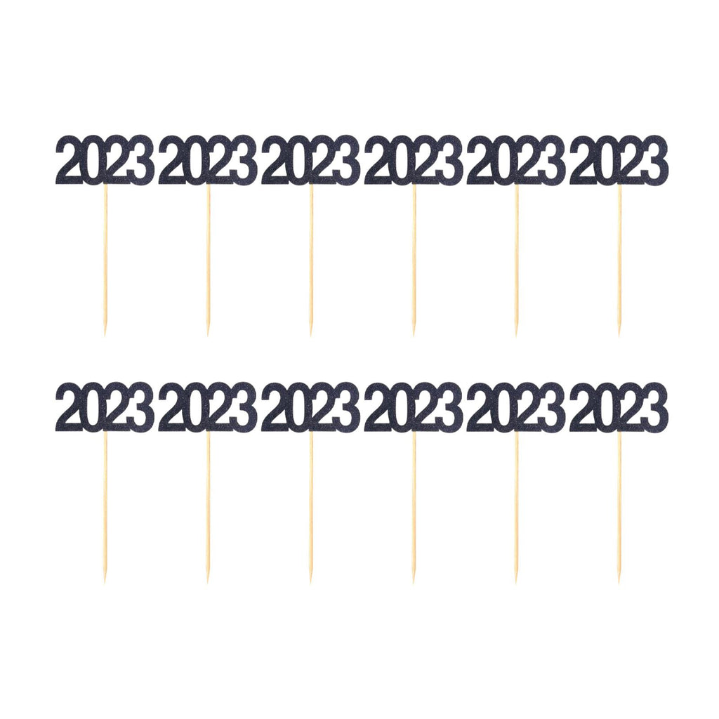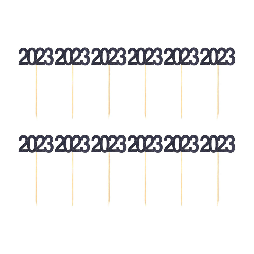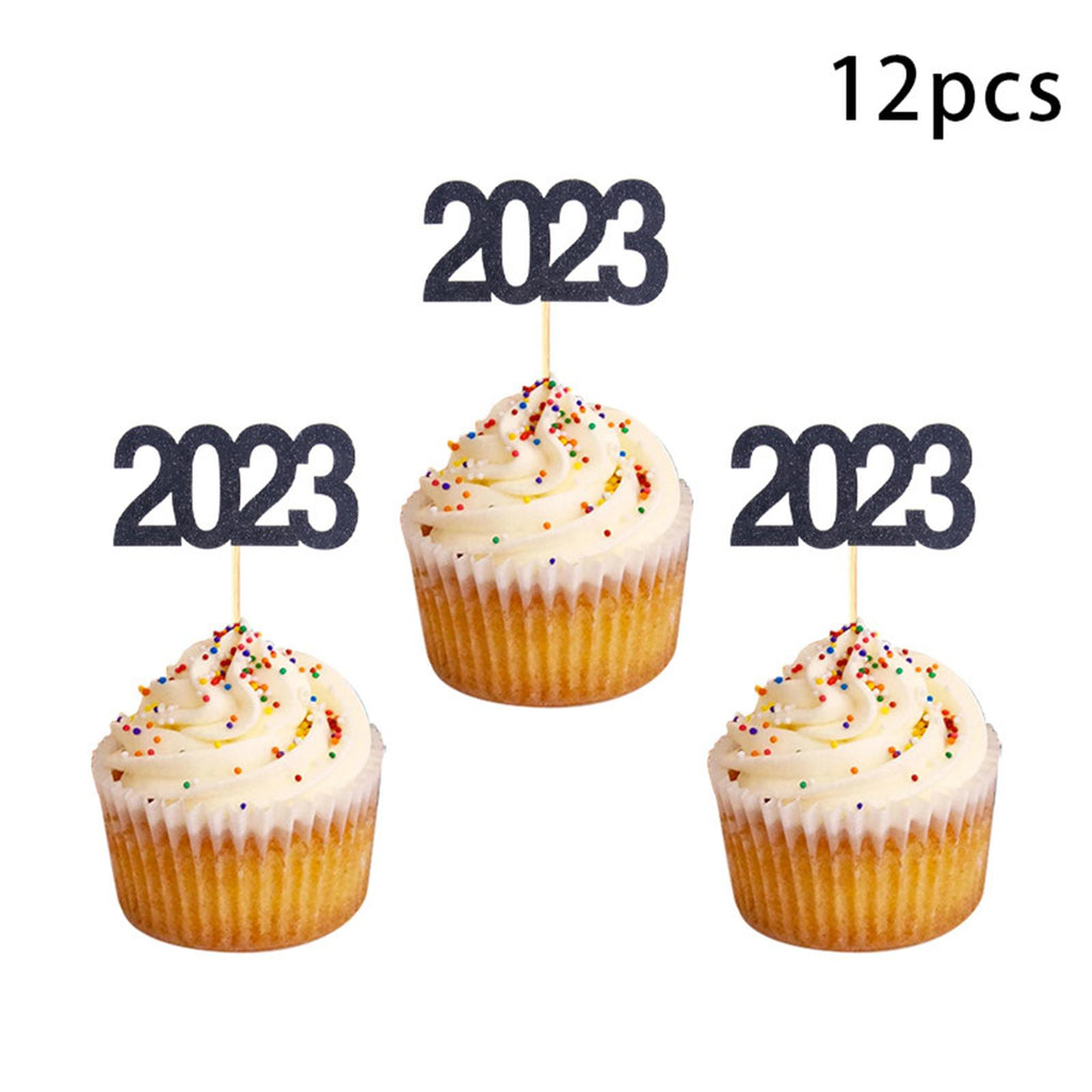 Maxbell 12Pcs 2023 Cupcake Topper Glitter for Party Decor Birthday Theme Supplies Black