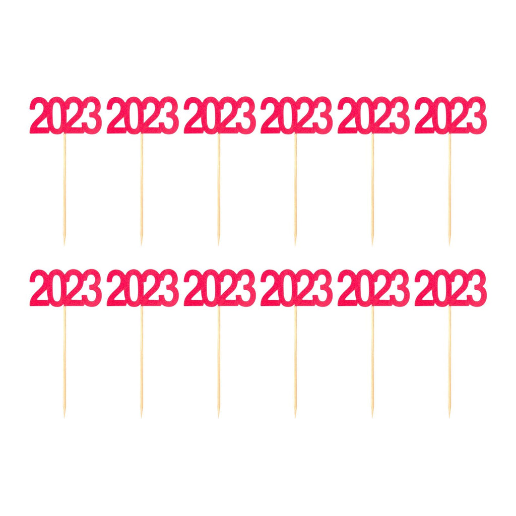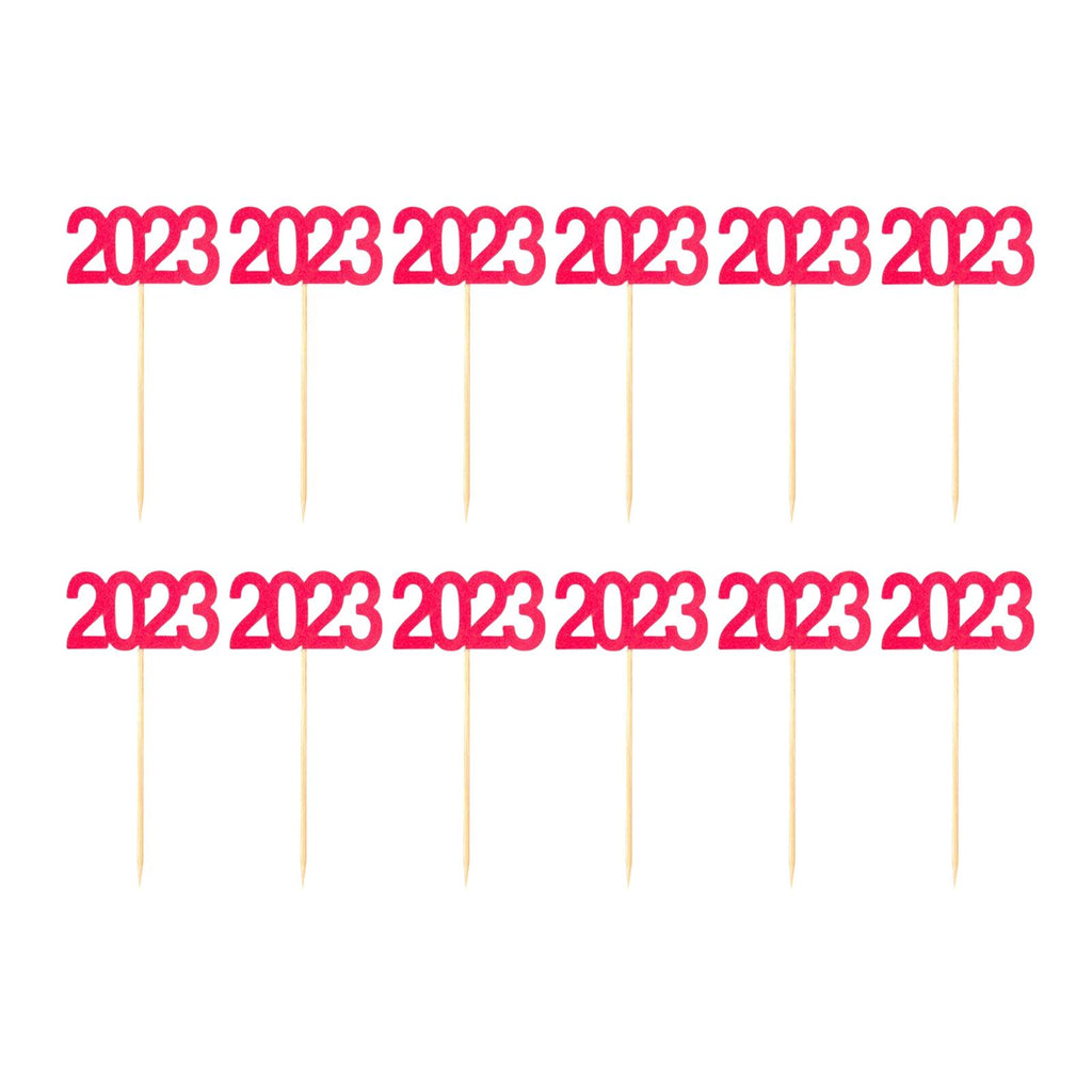 Maxbell 12Pcs 2023 Cupcake Topper Glitter for Party Decor Birthday Theme Supplies Red