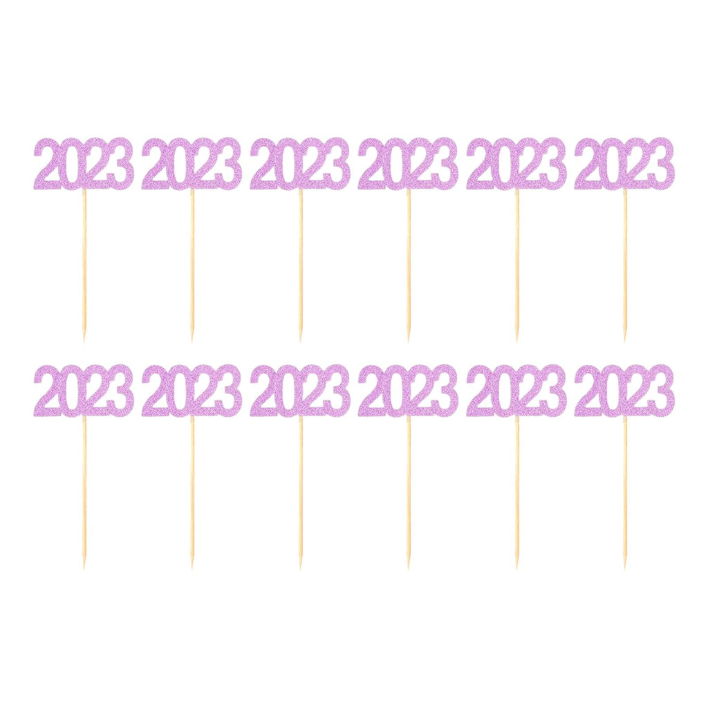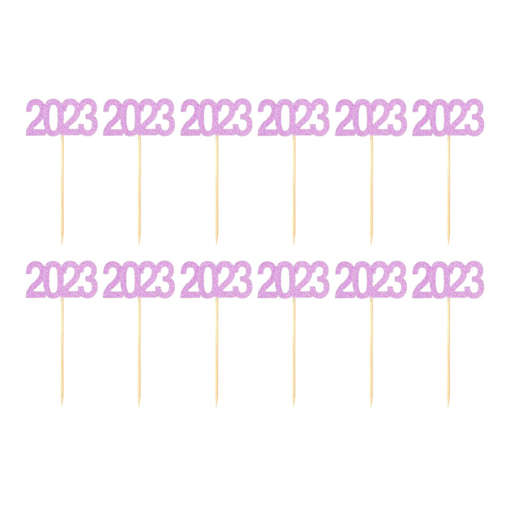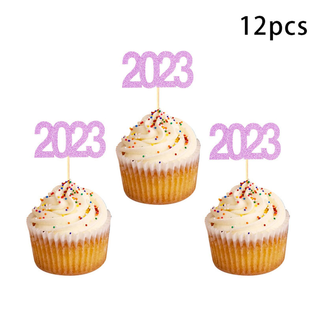Maxbell 12Pcs 2023 Cupcake Topper Glitter for Party Decor Birthday Theme Supplies Violet