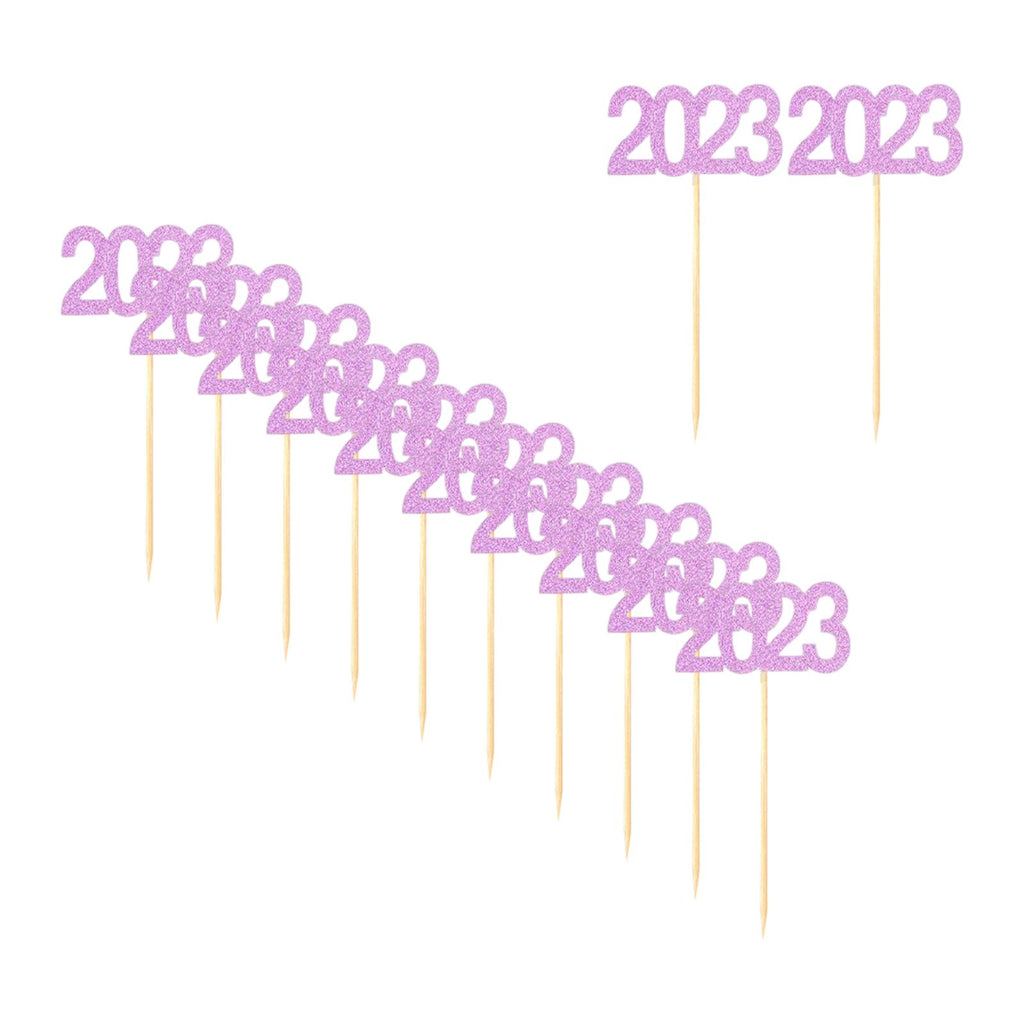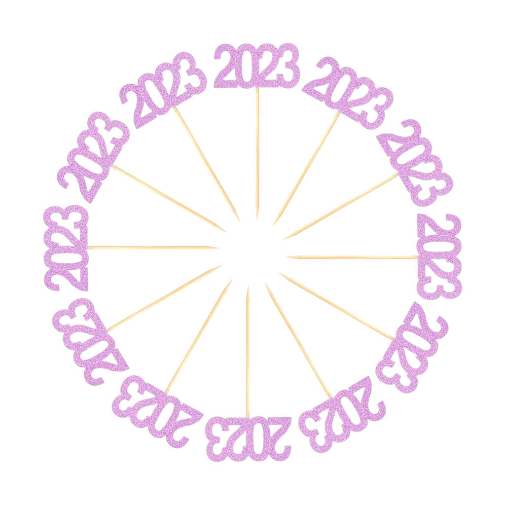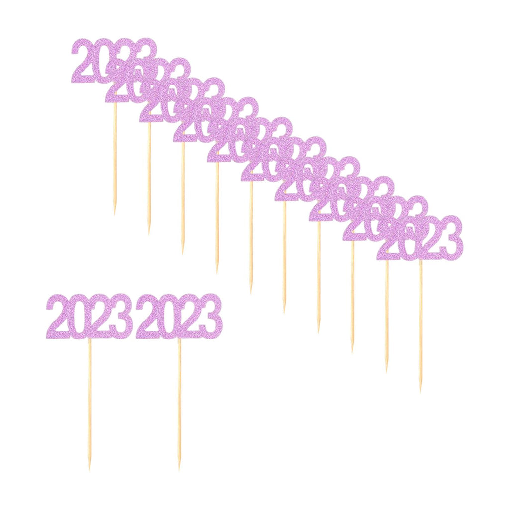 Maxbell 12Pcs 2023 Cupcake Topper Glitter for Party Decor Birthday Theme Supplies Violet