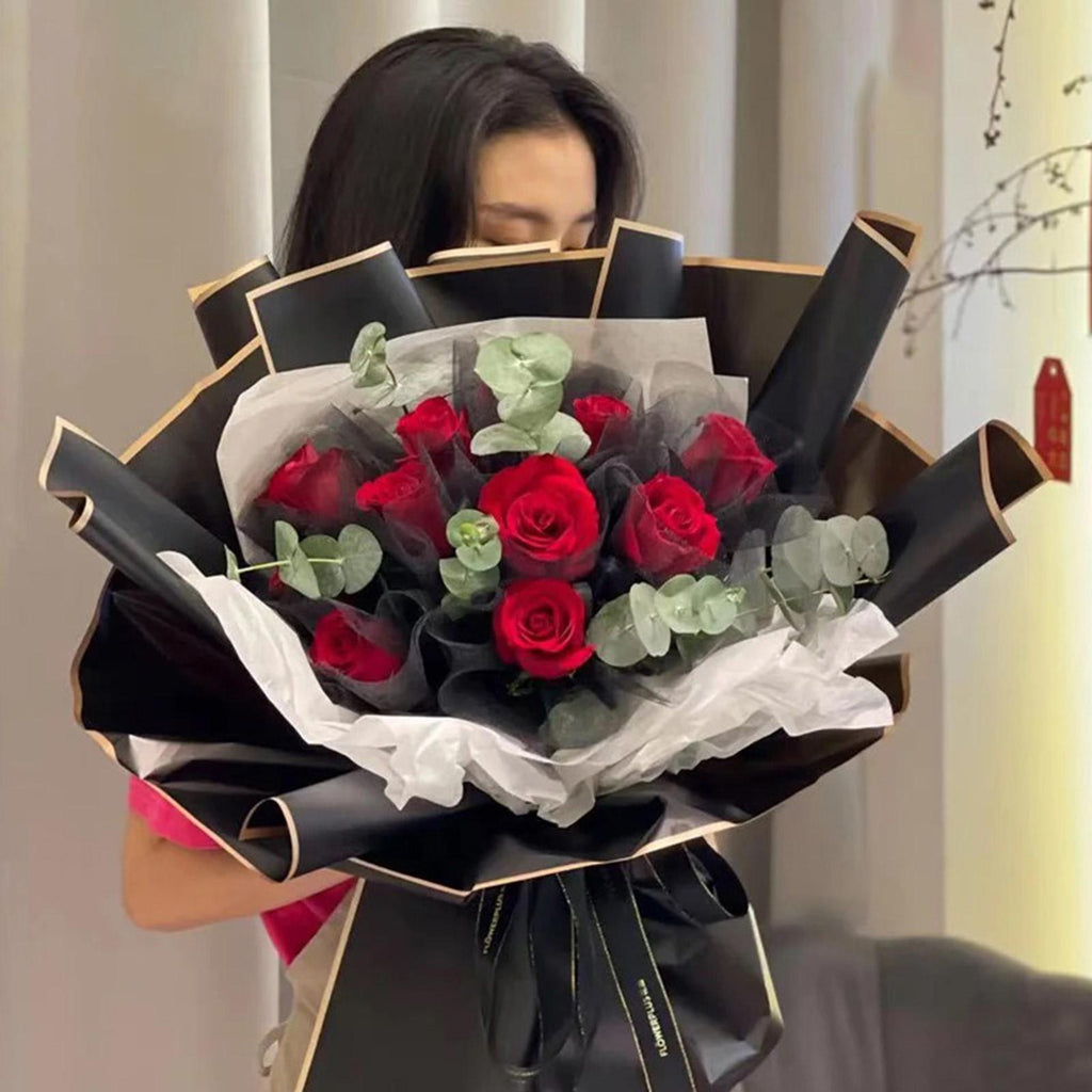Maxbell 20x Flower Wrapping Paper Waterproof Jelly Film Equipment Decor for Bouquet Black