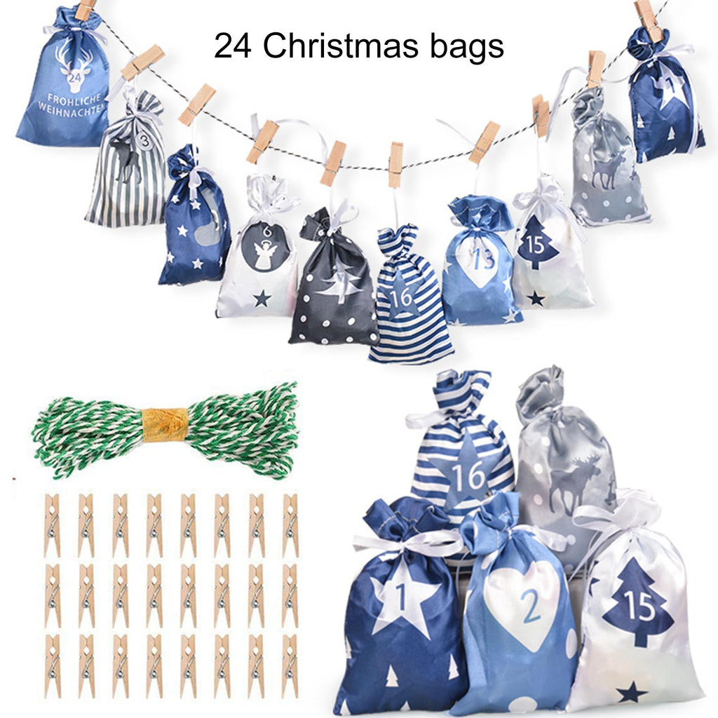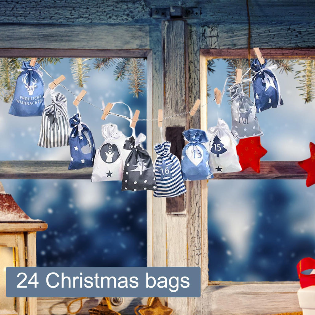 Maxbell Maxbell 24Days Advent Calendar Bags Christmas DIY Wall Decor Clips Rope Labels