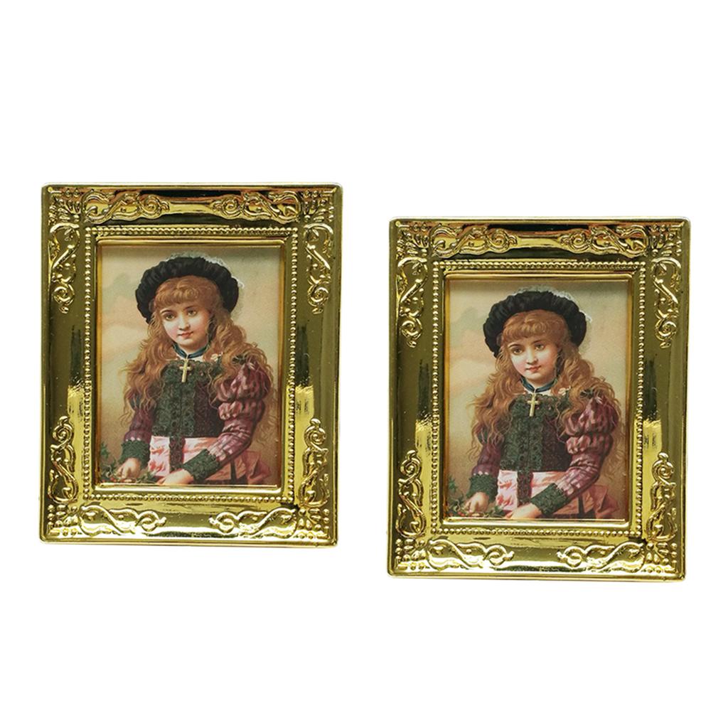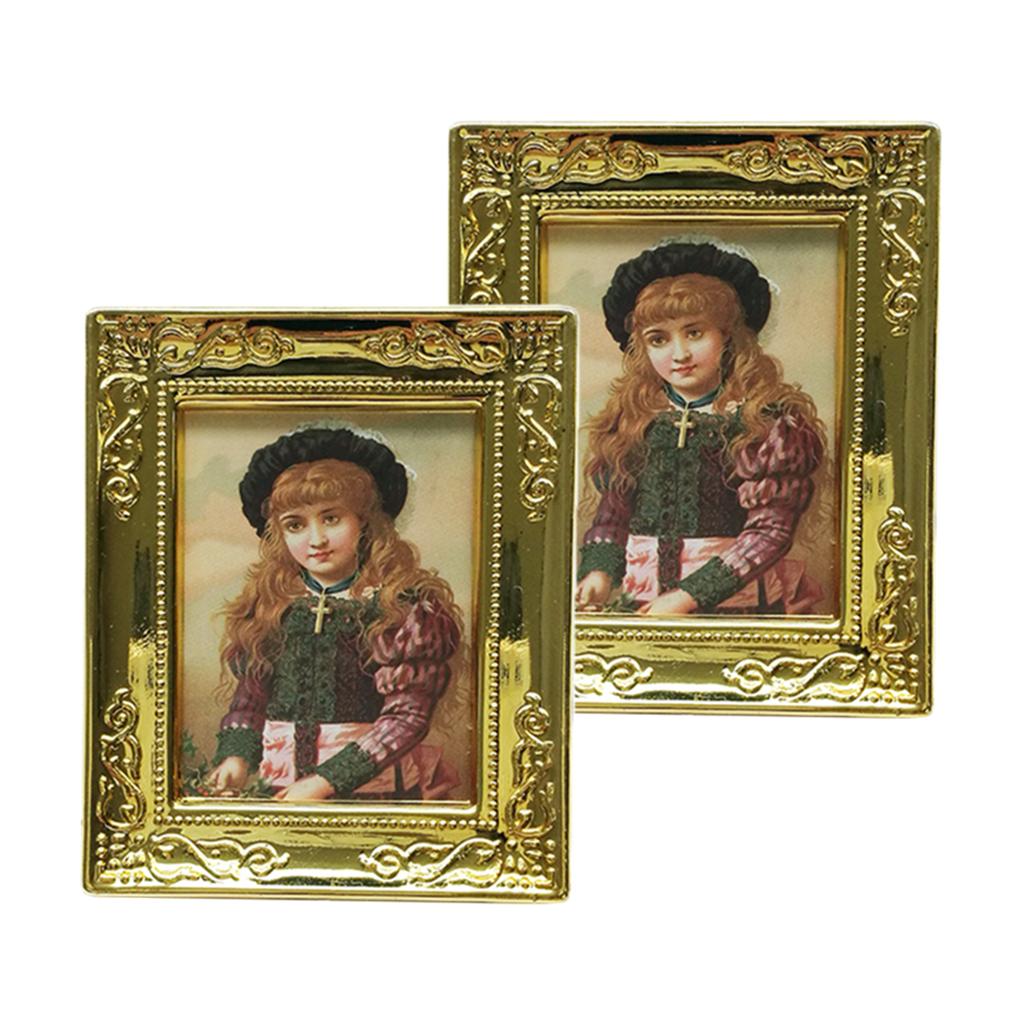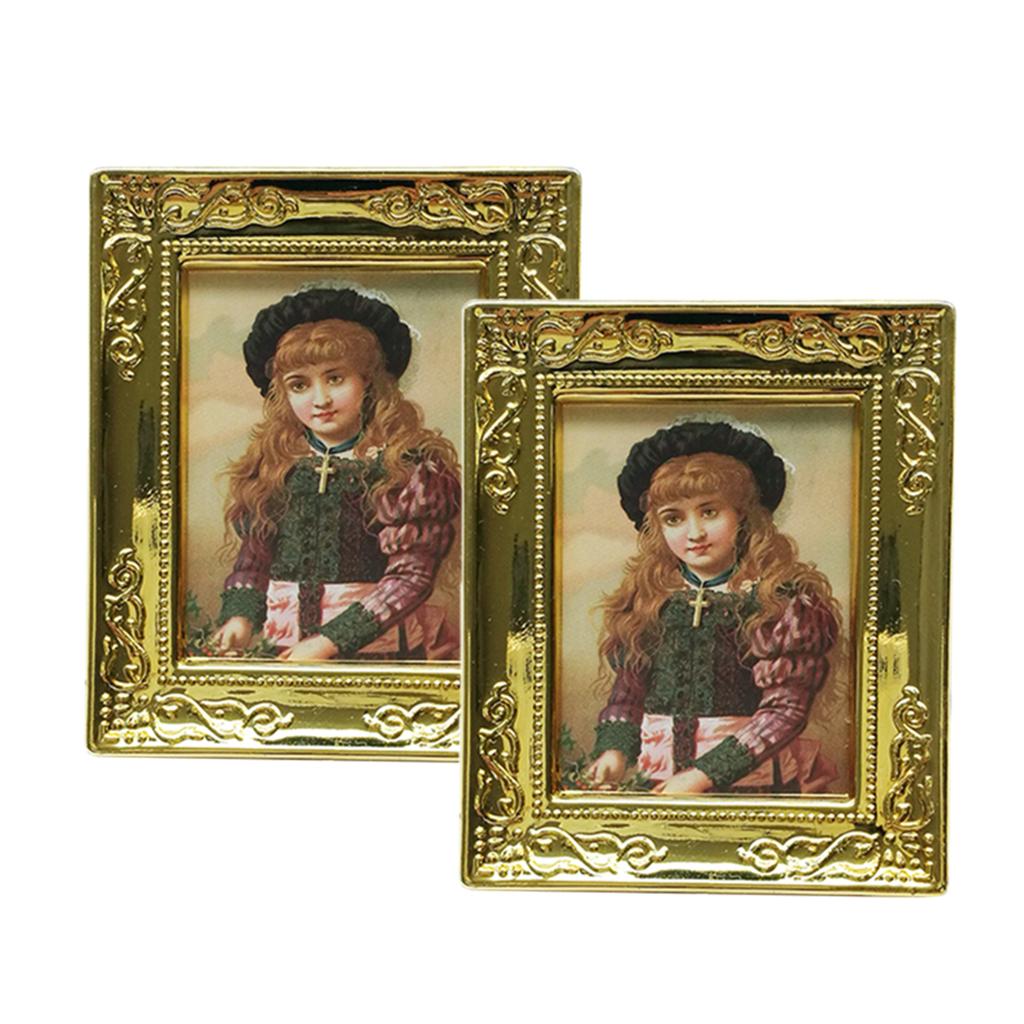 Maxbell 2pcs 1:12 Dollhouse Gold Picture Frame Decor Accessories Girl
