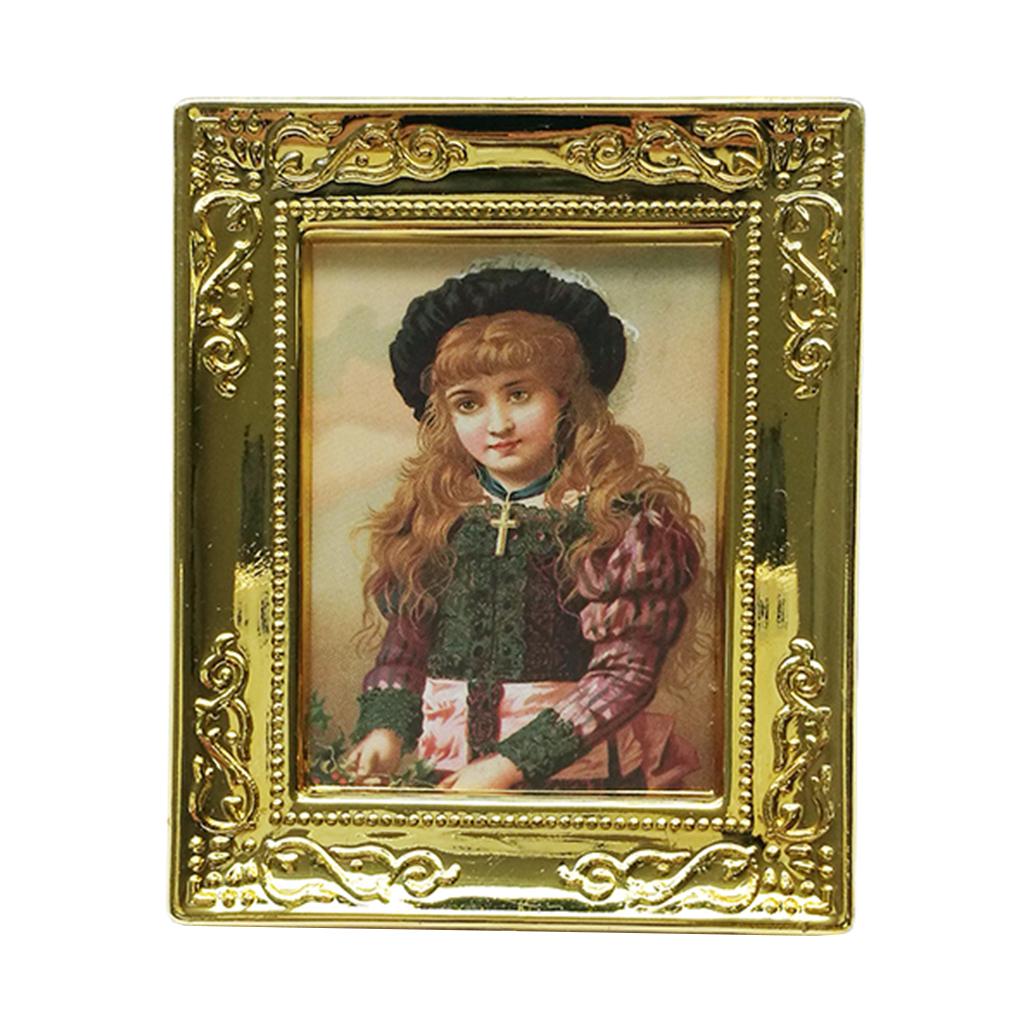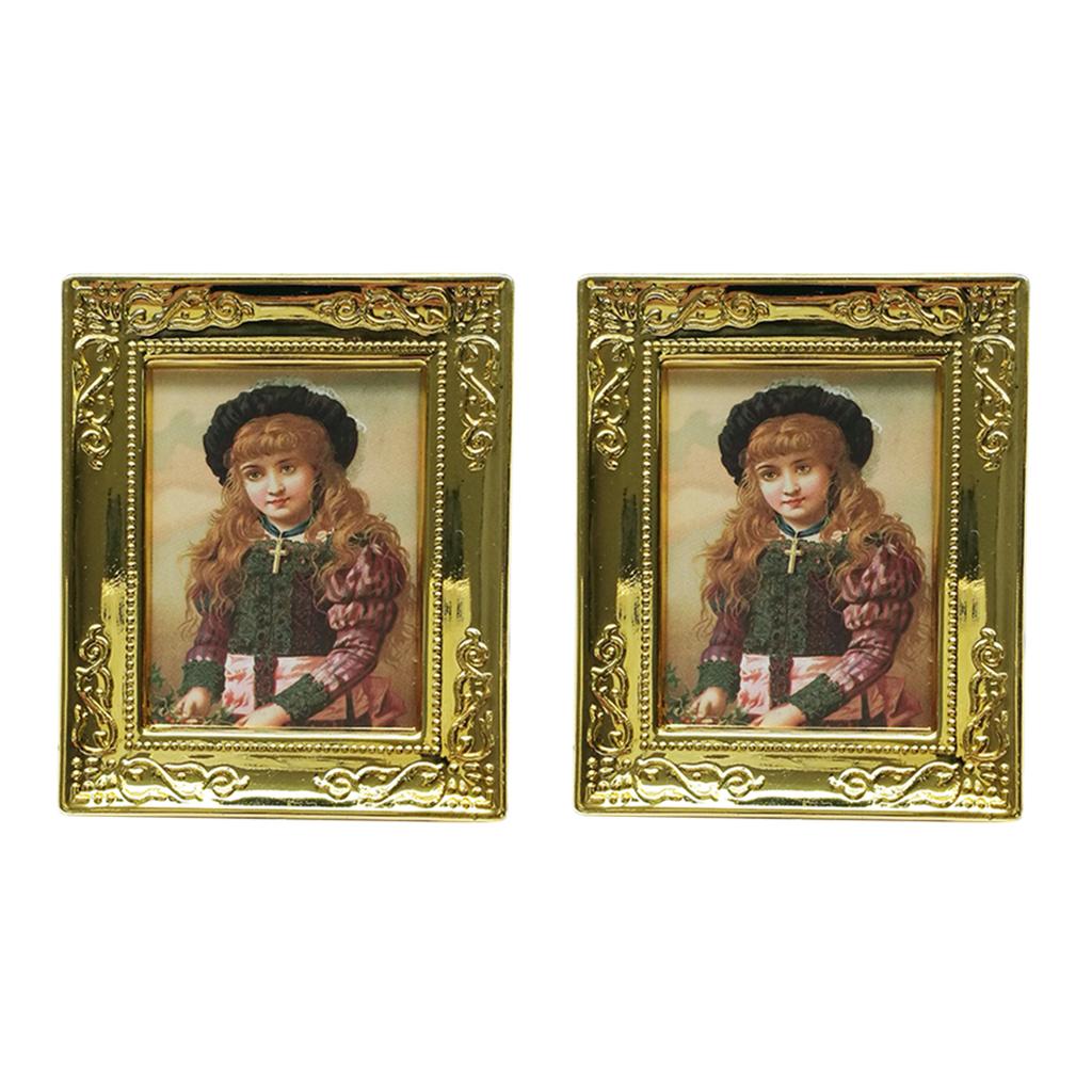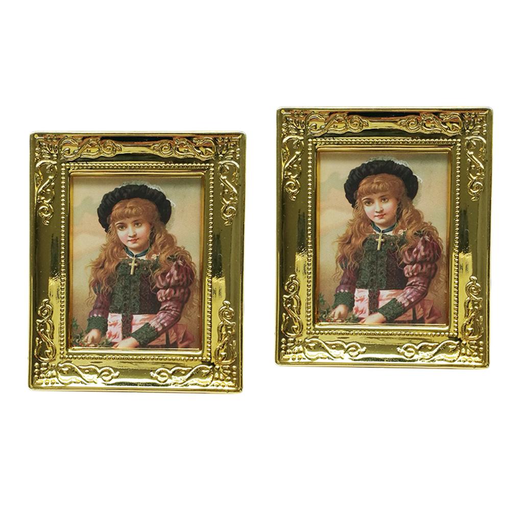 Maxbell 2pcs 1:12 Dollhouse Gold Picture Frame Decor Accessories Girl