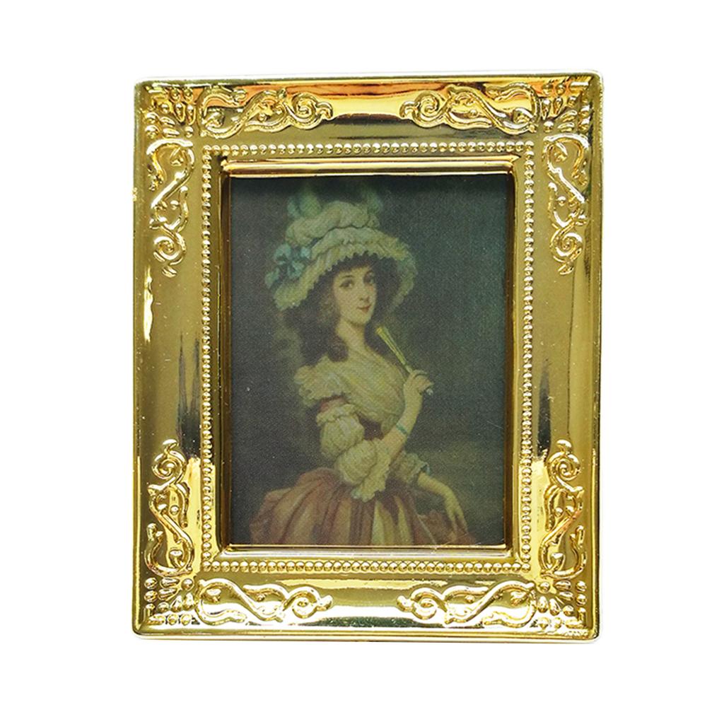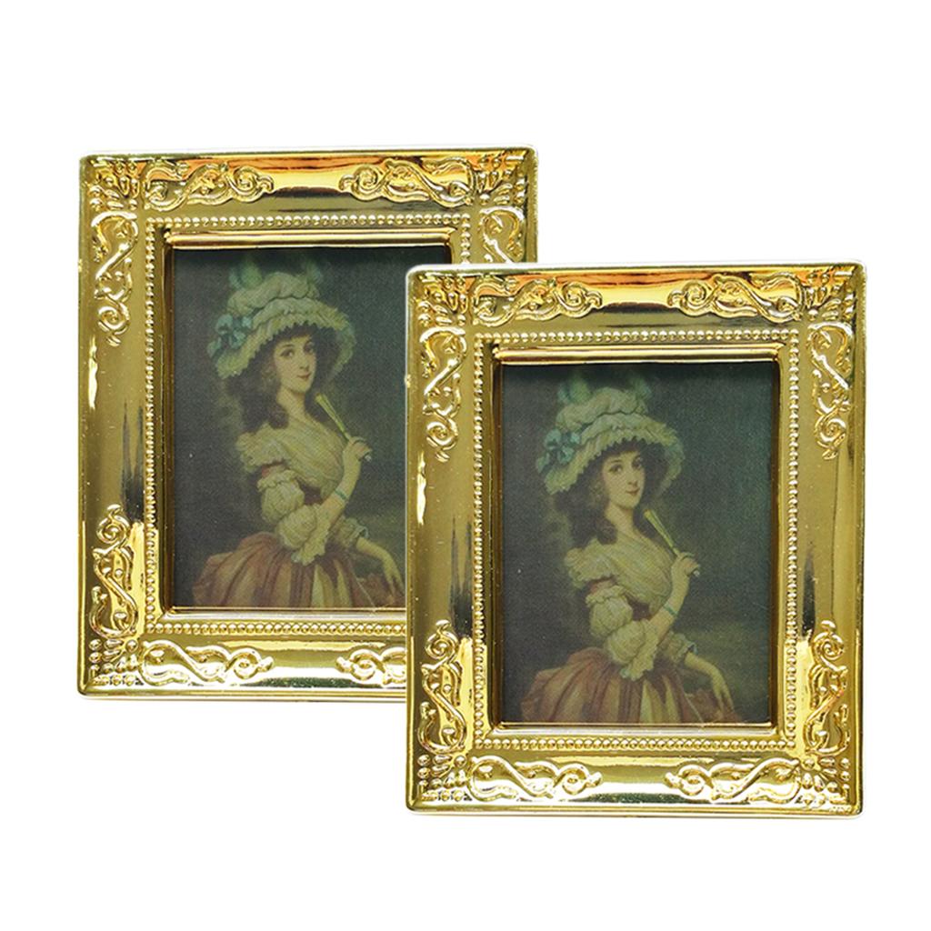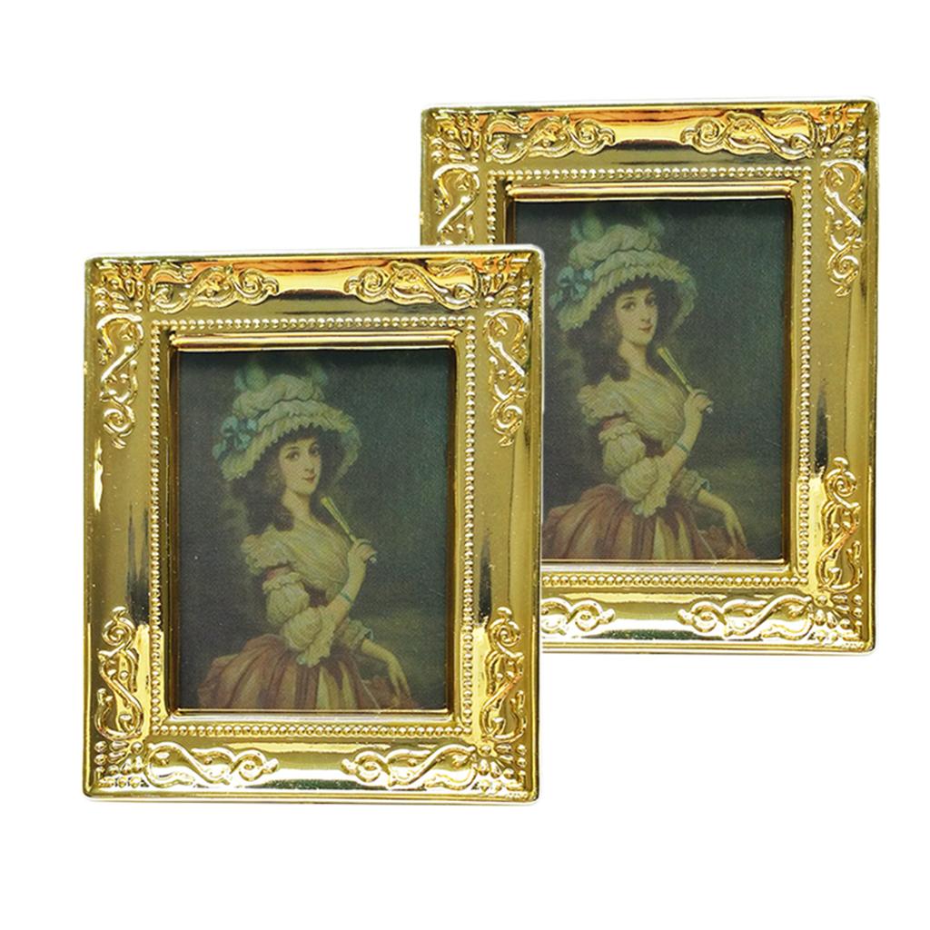 Maxbell 2pcs 1:12 Dollhouse Gold Picture Frame Decor Accessories Lady