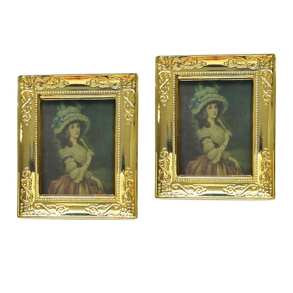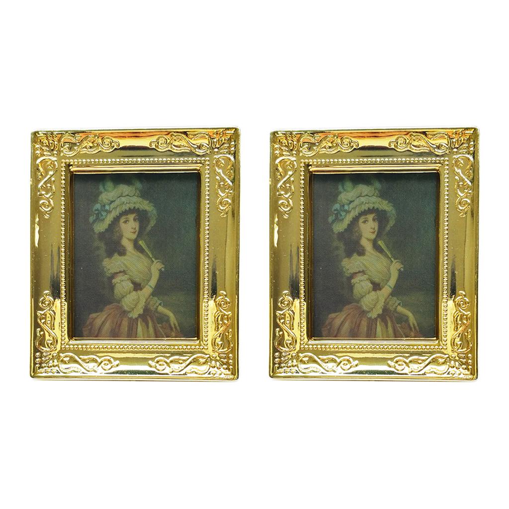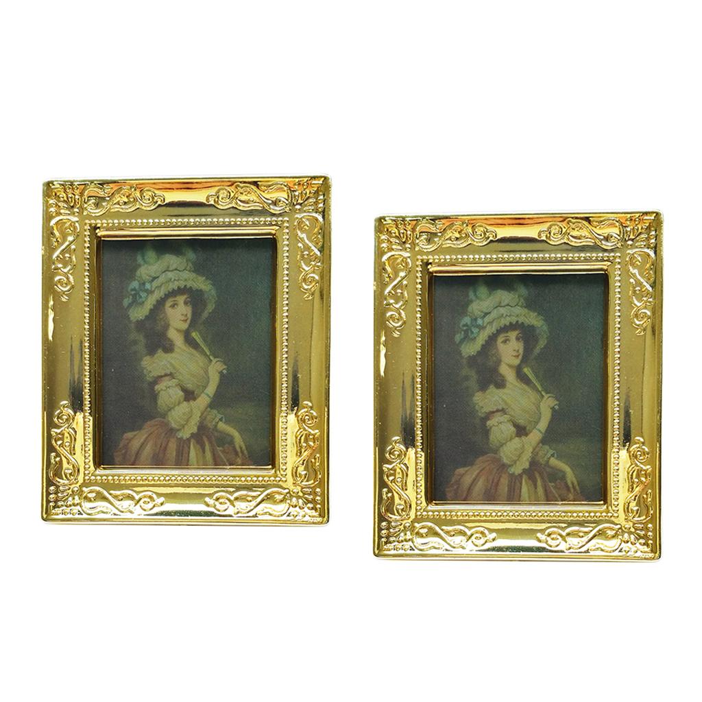 Maxbell 2pcs 1:12 Dollhouse Gold Picture Frame Decor Accessories Lady