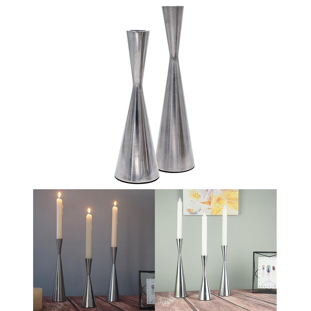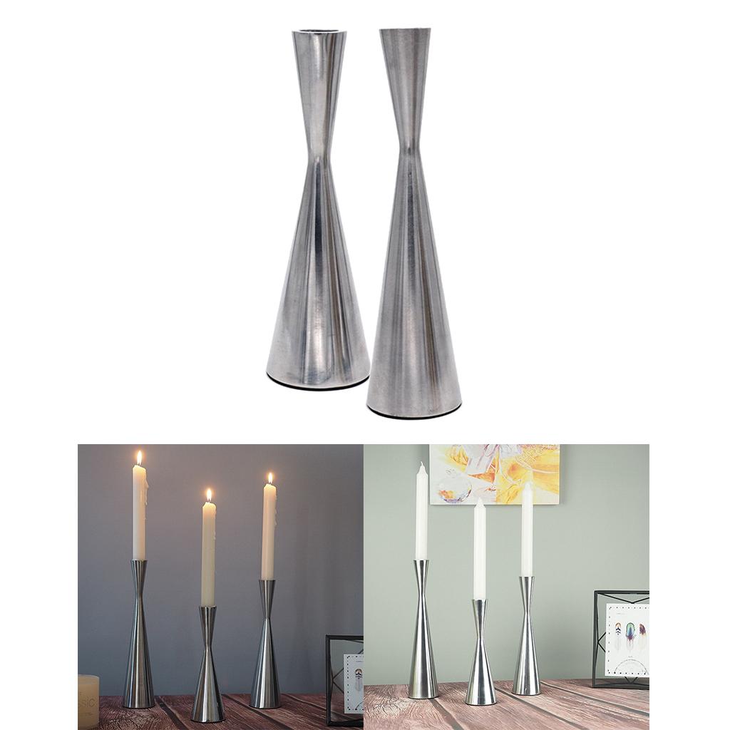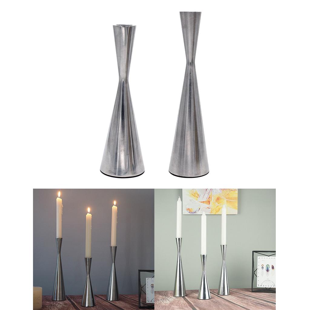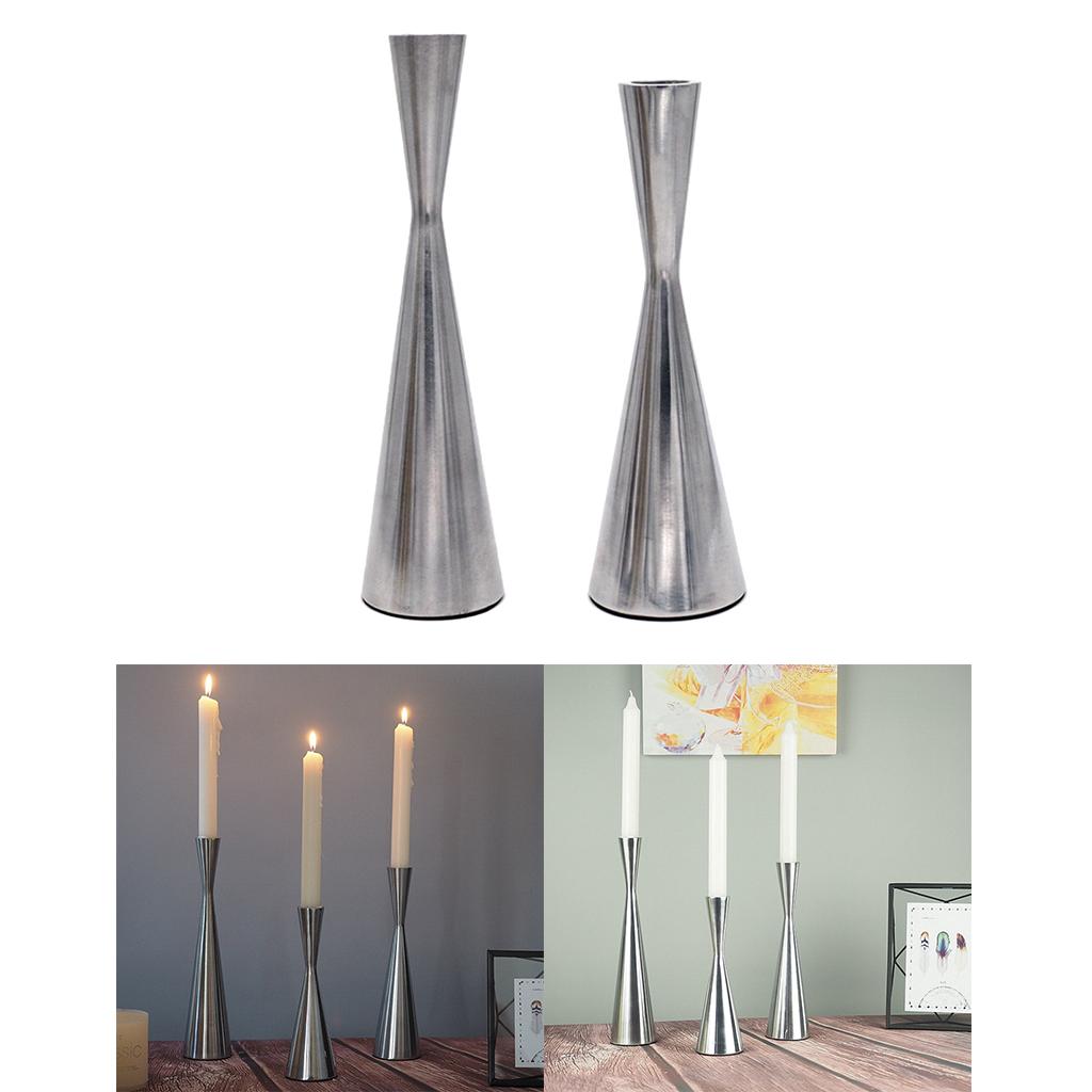 Maxbell 2pcs Pillar Dinner Candle Holder Candleholder Stand for Wedding Decor Silver