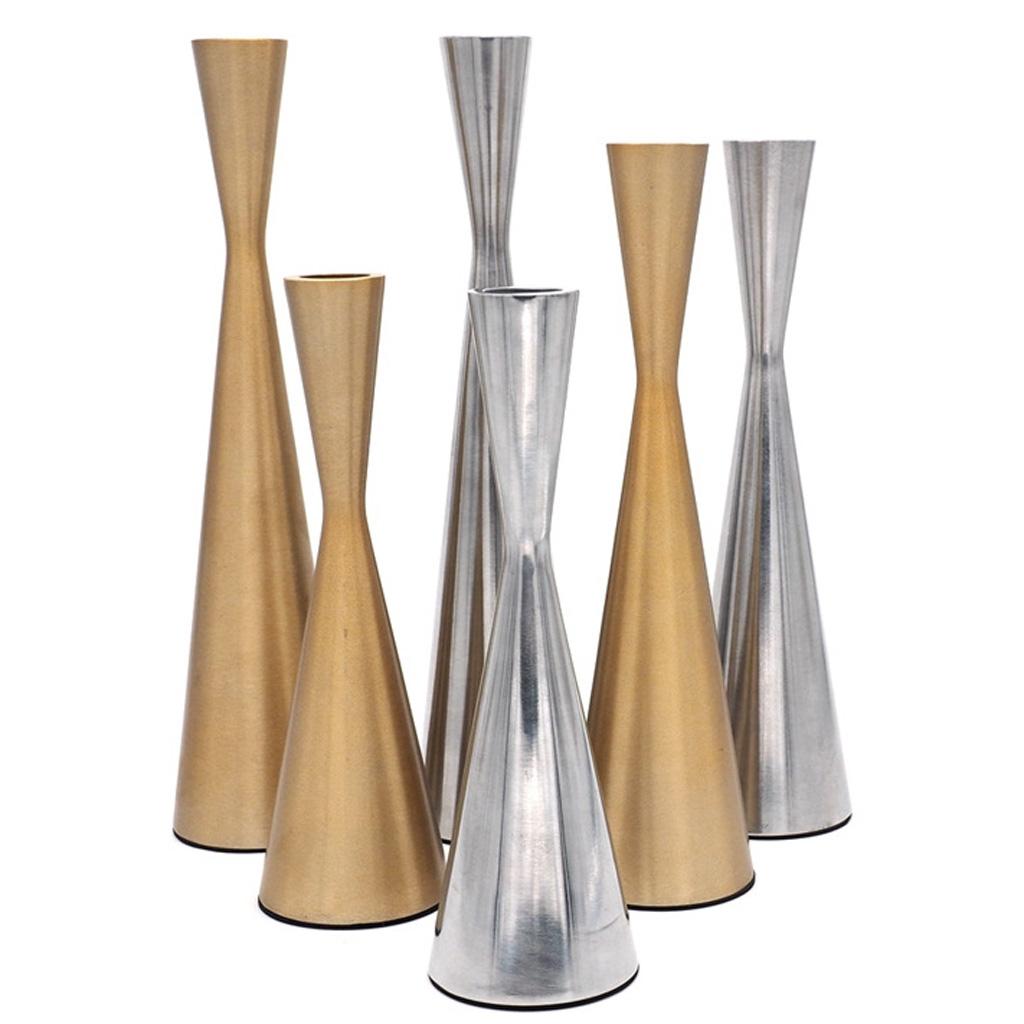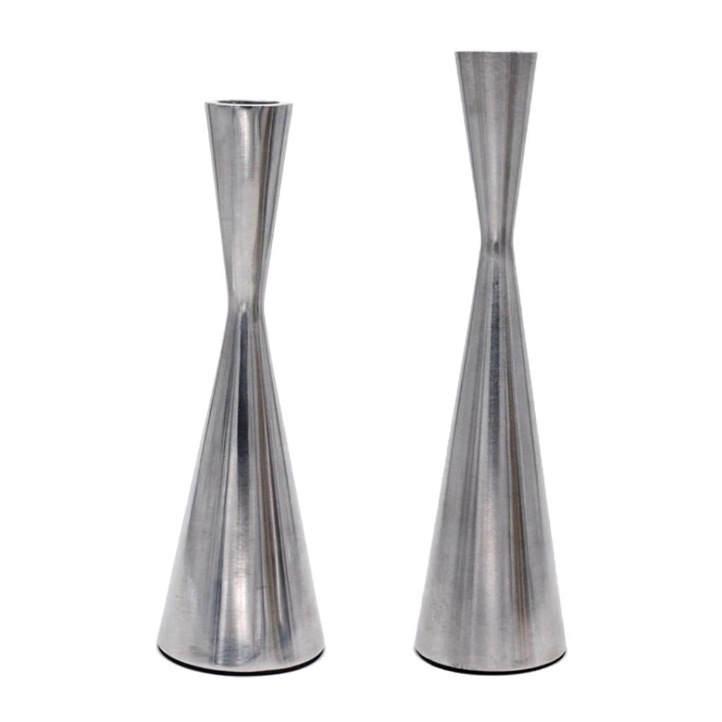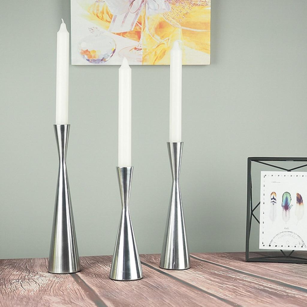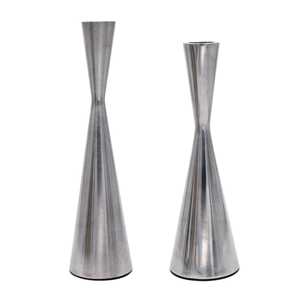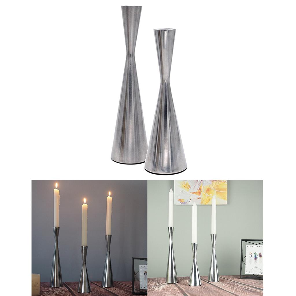 Maxbell 2pcs Pillar Dinner Candle Holder Candleholder Stand for Wedding Decor Silver