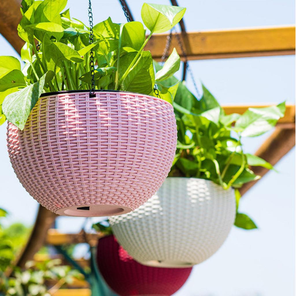 Maxbell 2pcs Plastic Flower Pot Hanging Basket Garden Planter Balcony Decoration