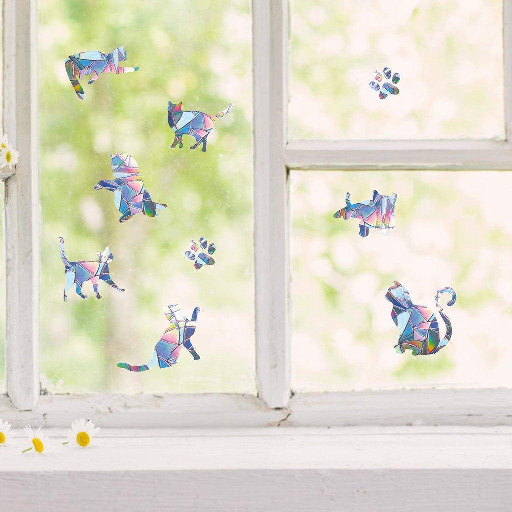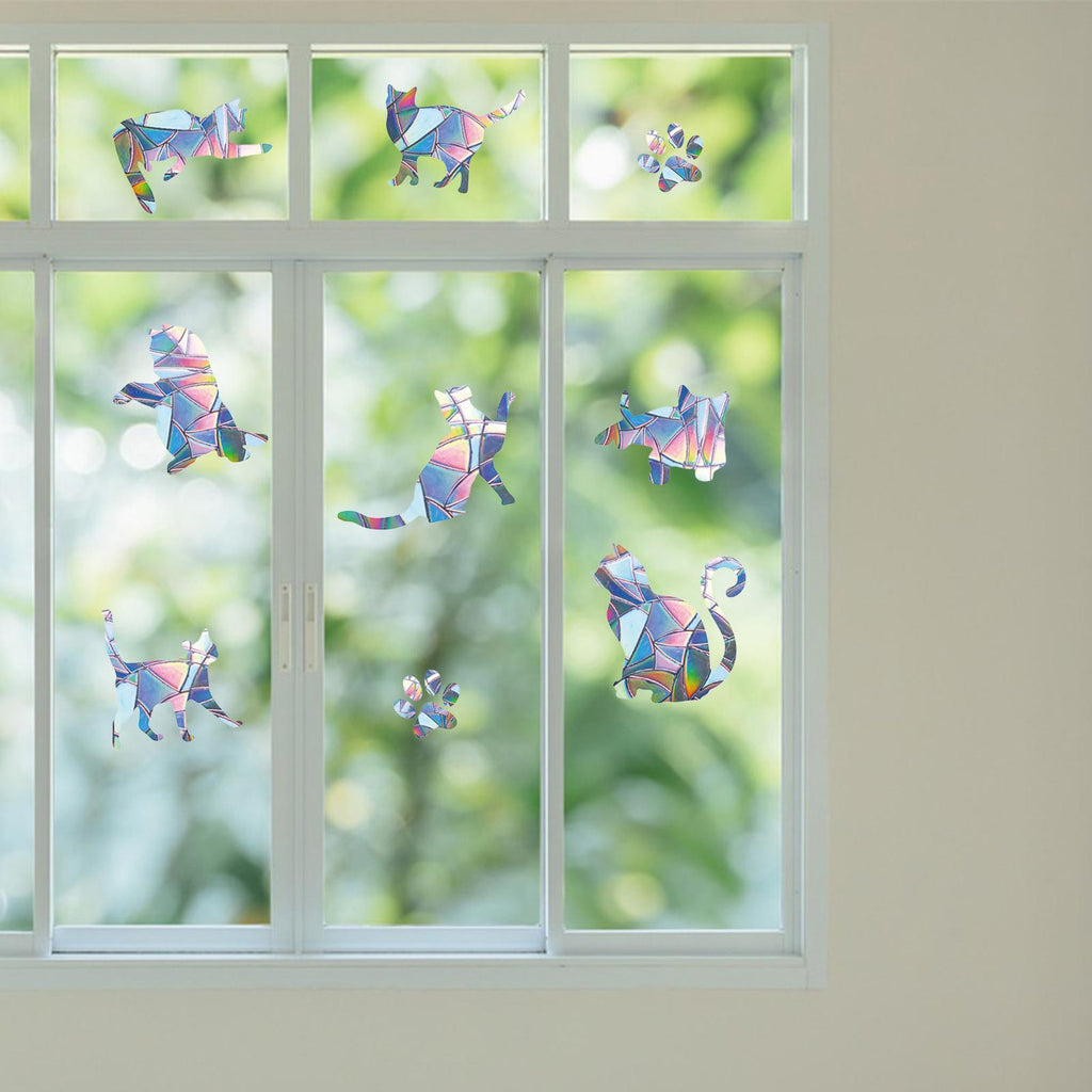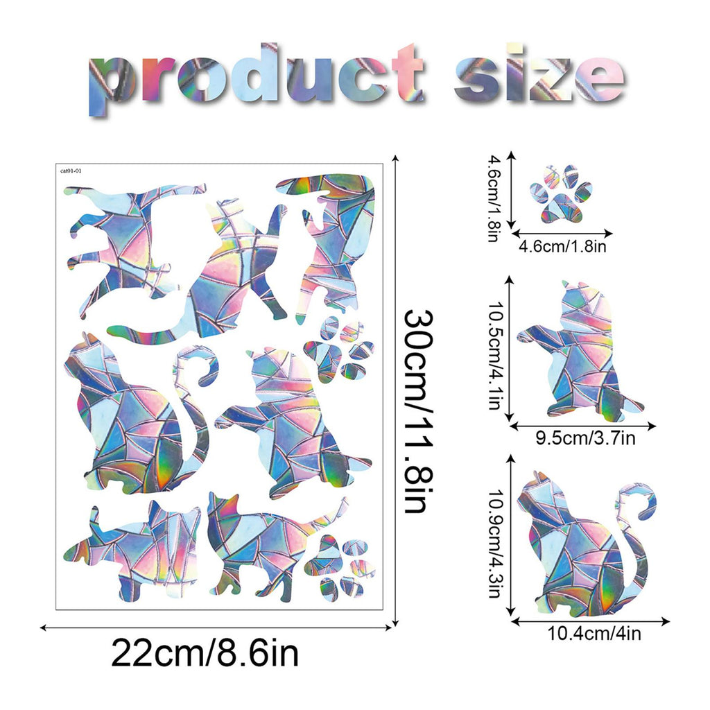 Design: This mirror decal is cats shape, easy to apply and removable, and when sunlight shines through the sticker, it casts colored light in the room.