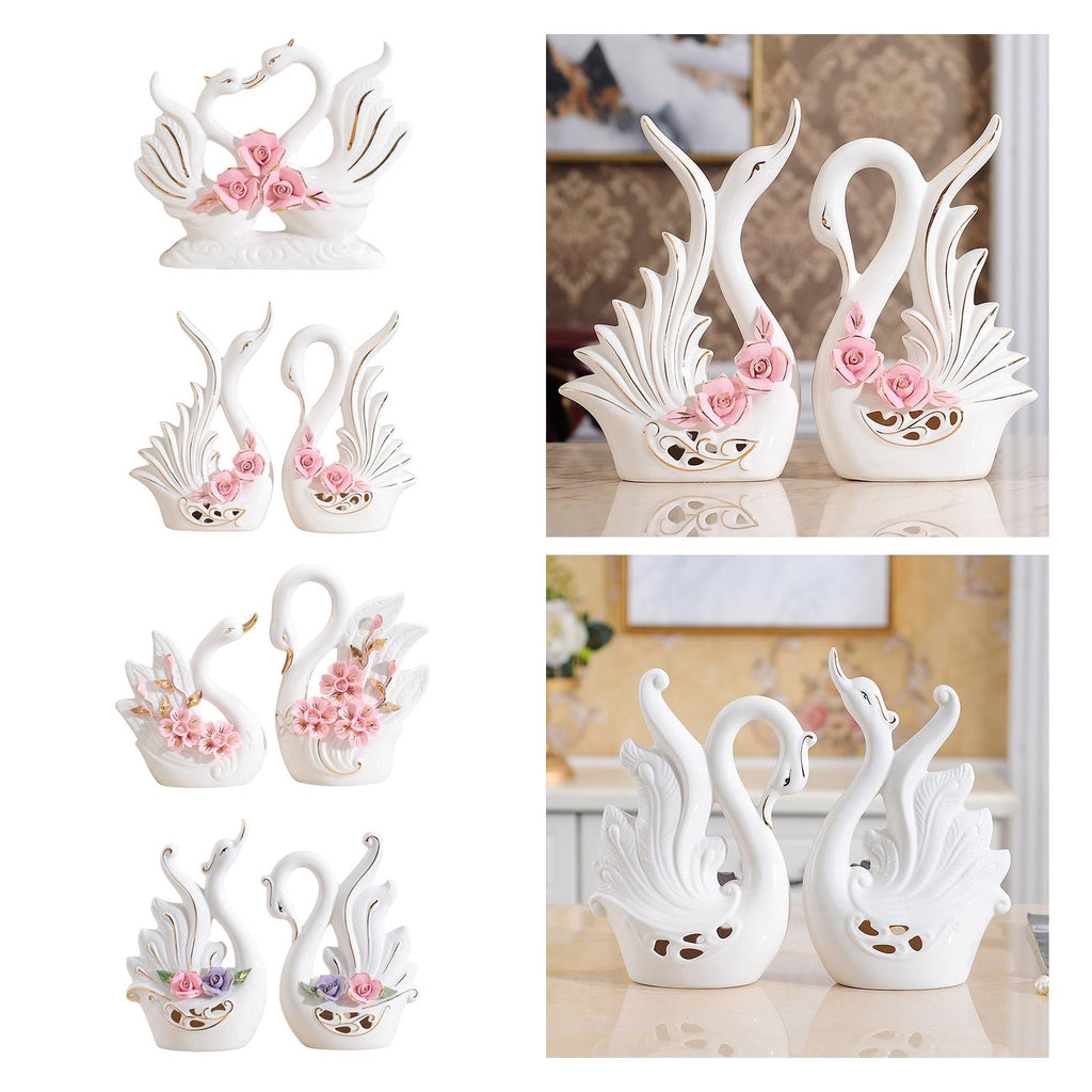 Maxbell 2Pcs White Swan Figurines Modern Ceramic Sculpture Swan Ornament Decoration Style A