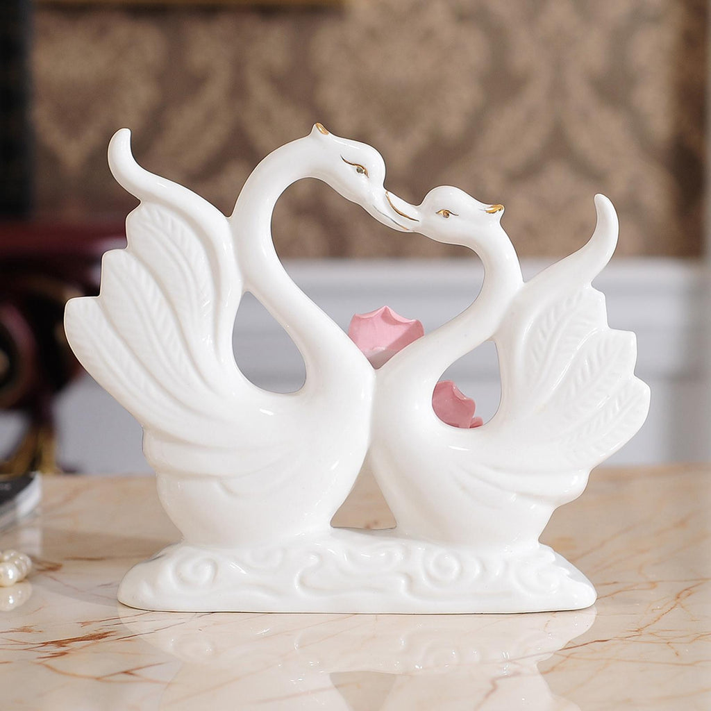 Creative Decoration: A couple of swan figurines, elegant, modern, and chic.