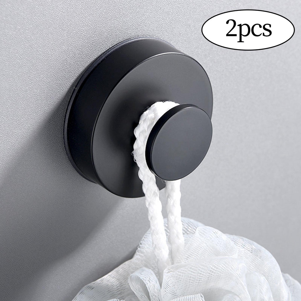 Maxbell 2x Aluminum Alloy Suction Cup Hooks Decorative for Restroom Pantry Office Black