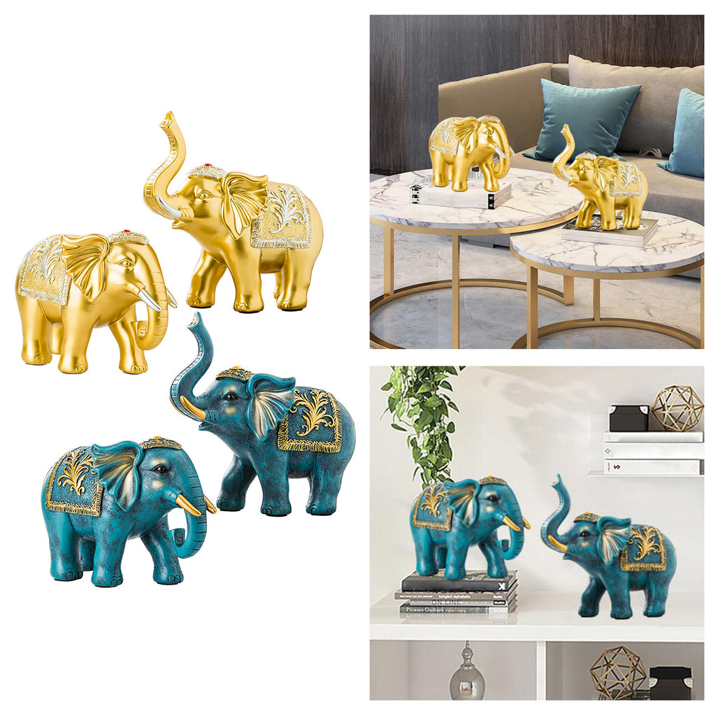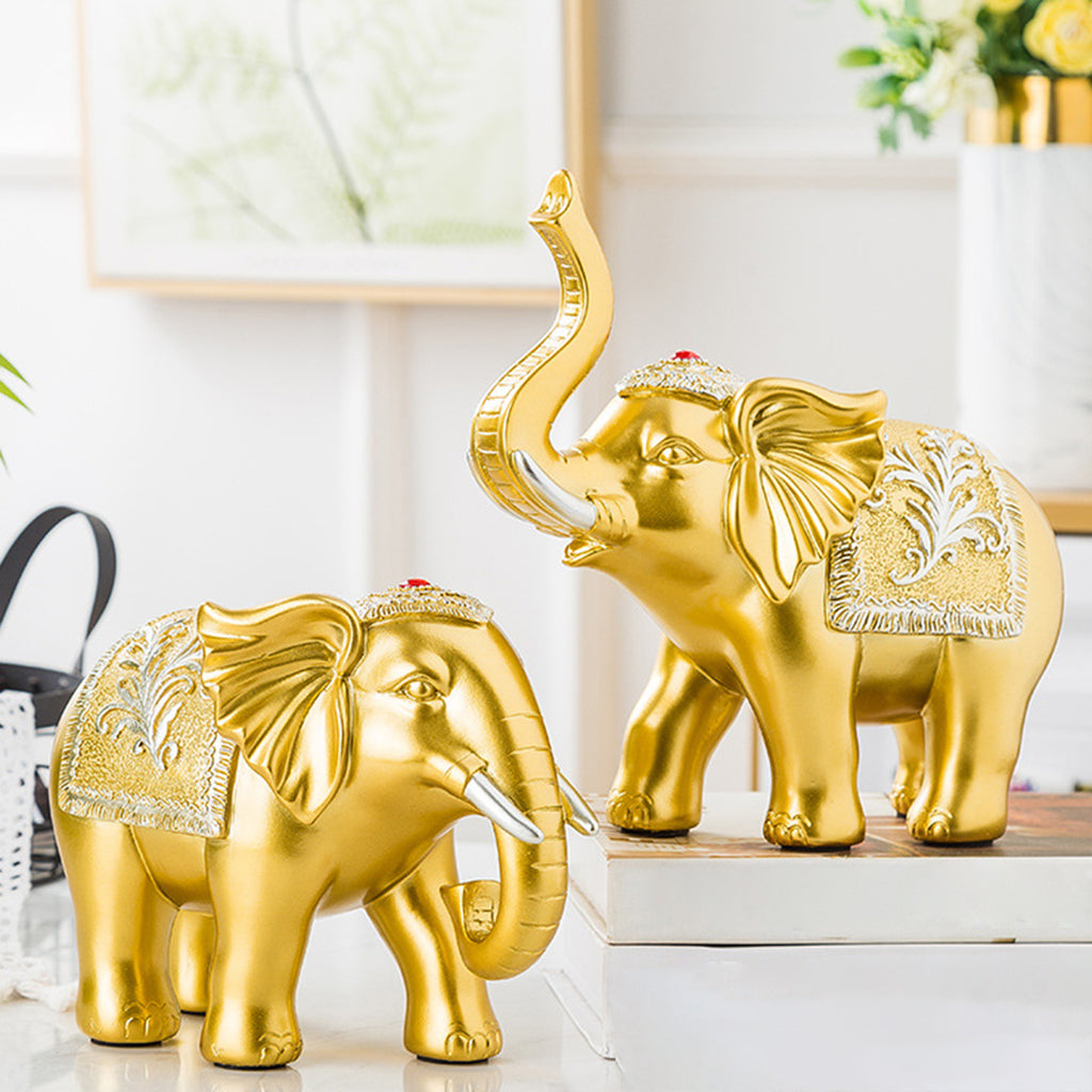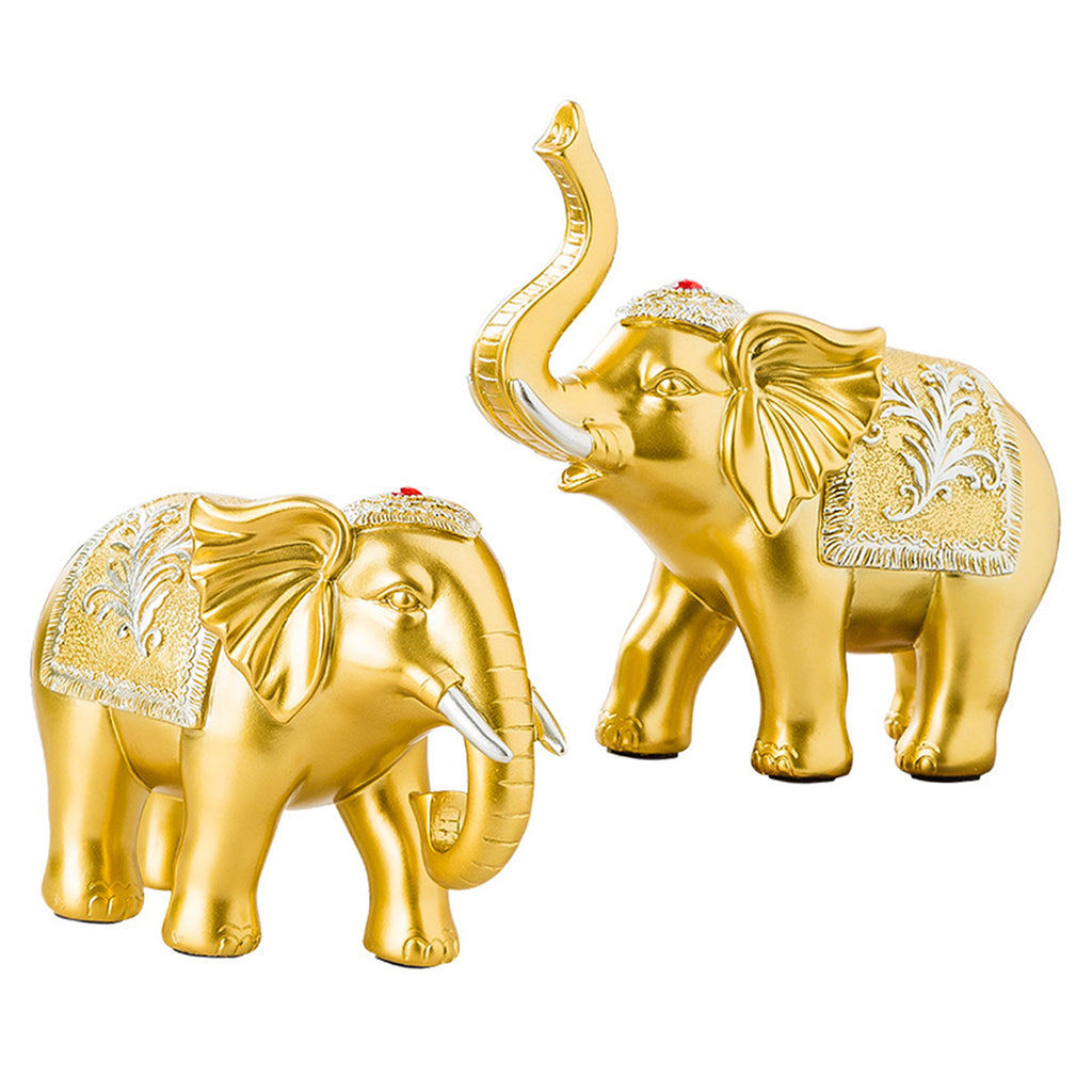 Maxbell 2x Lucky Feng Shui Elephant Statue Sculpture Wealth Figurine Gift Home Decor Gold