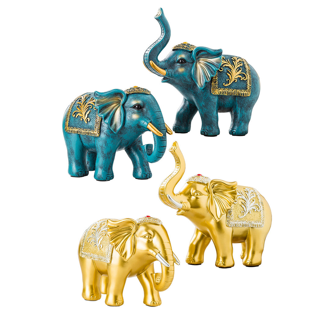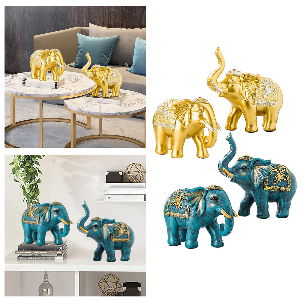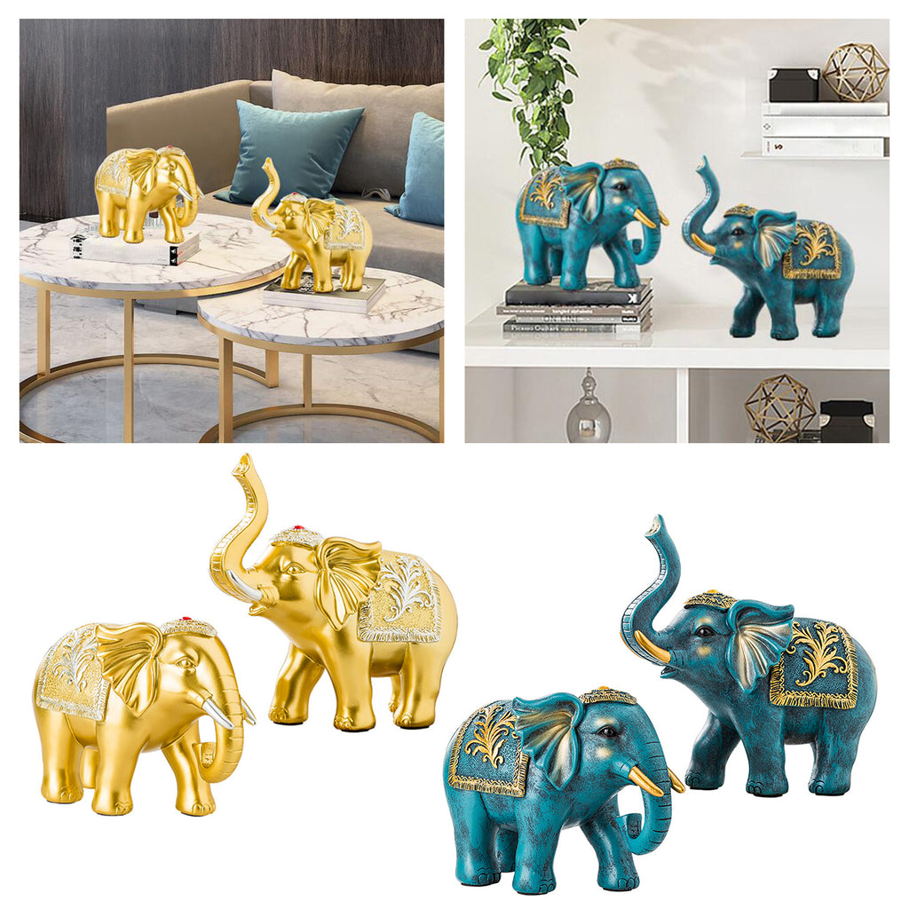 Maxbell 2x Lucky Feng Shui Elephant Statue Sculpture Wealth Figurine Gift Home Decor Gold