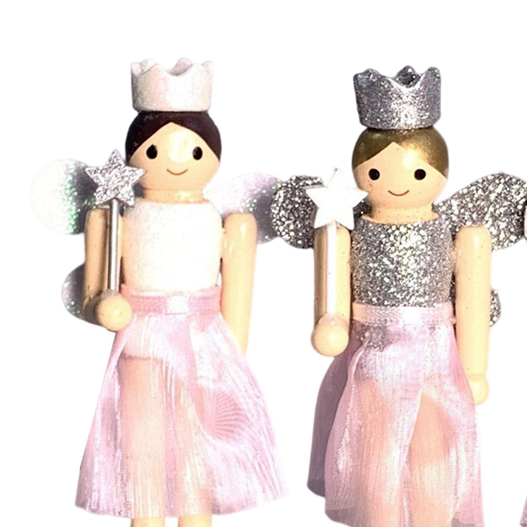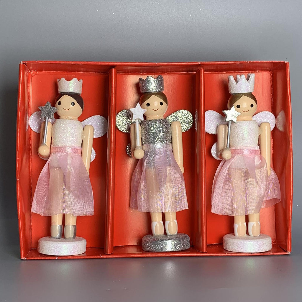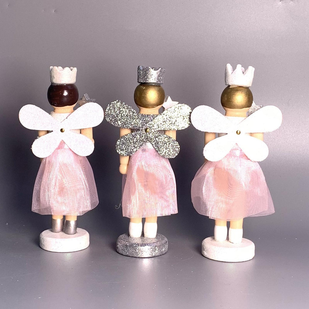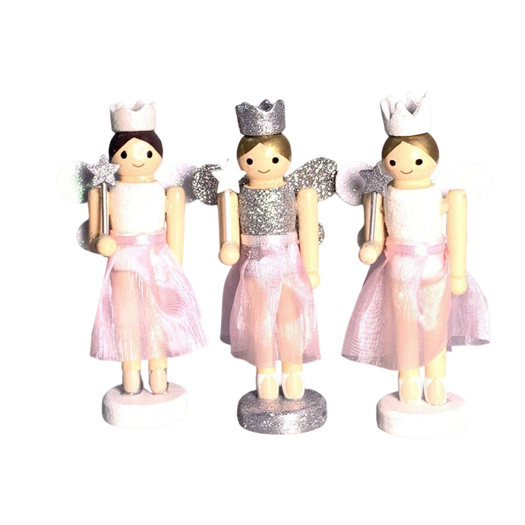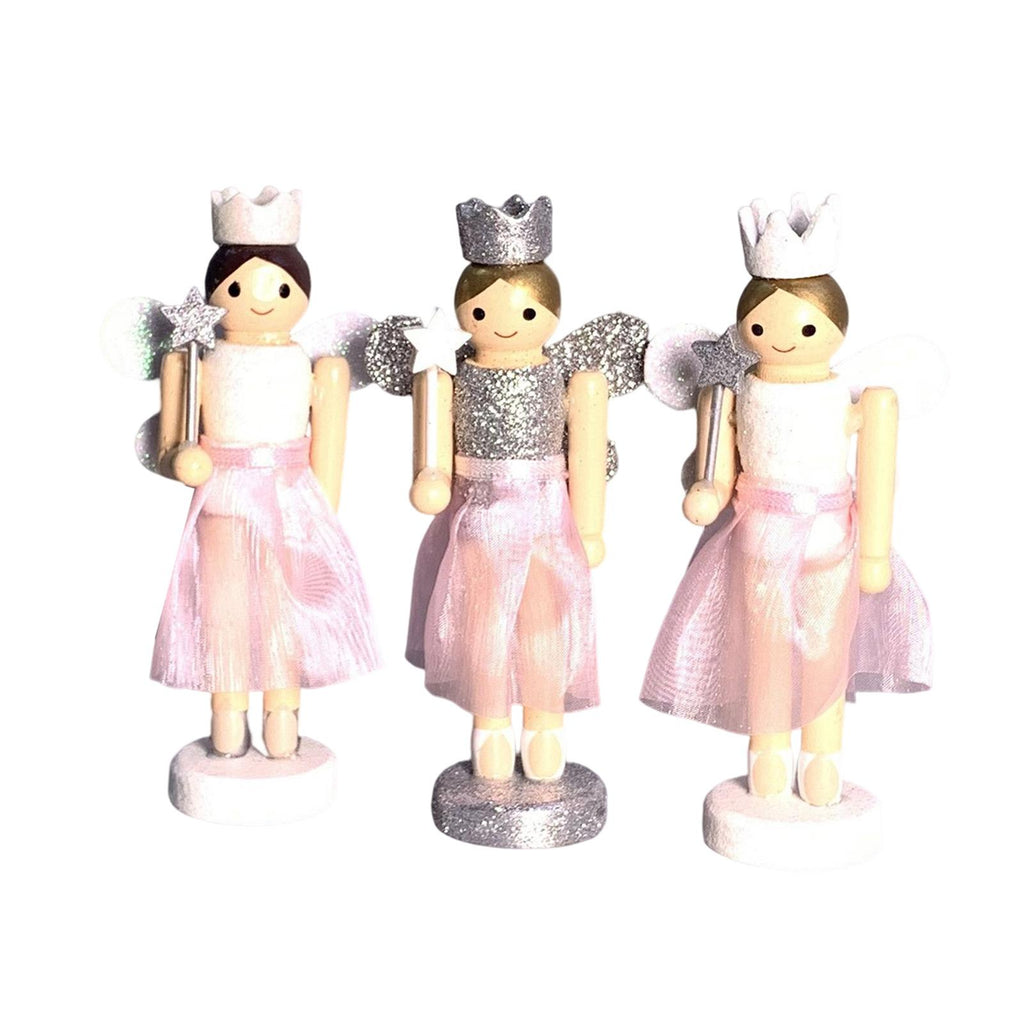 Maxbell 3 Pieces Christmas Decor Nutcracker Angel Figurine Traditional for Bedroom Silver+White