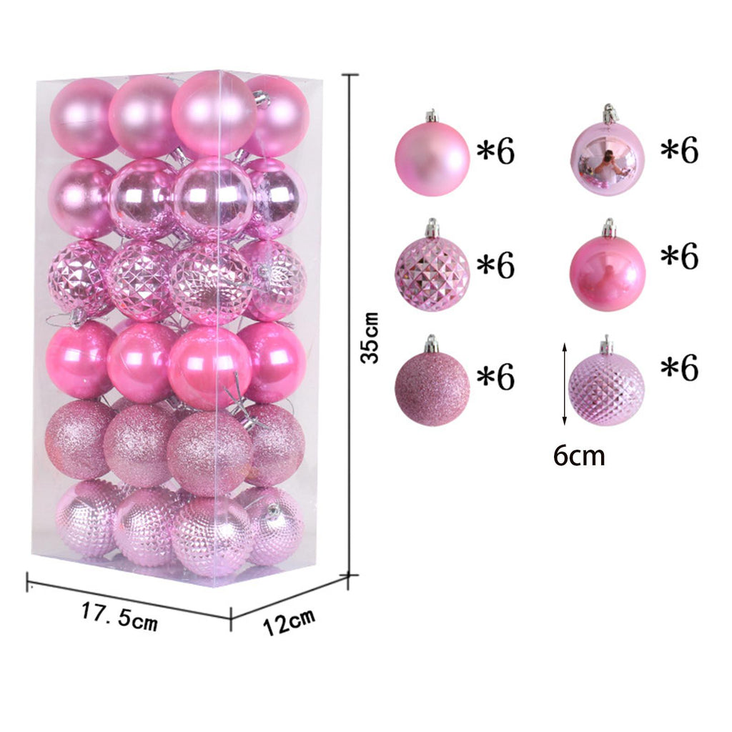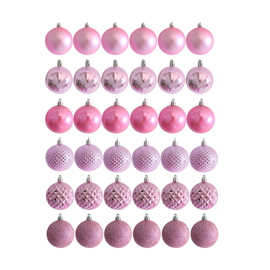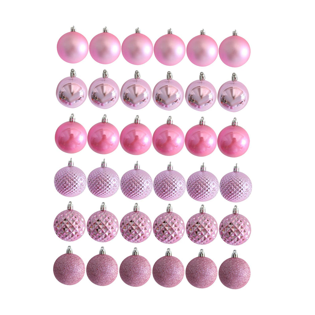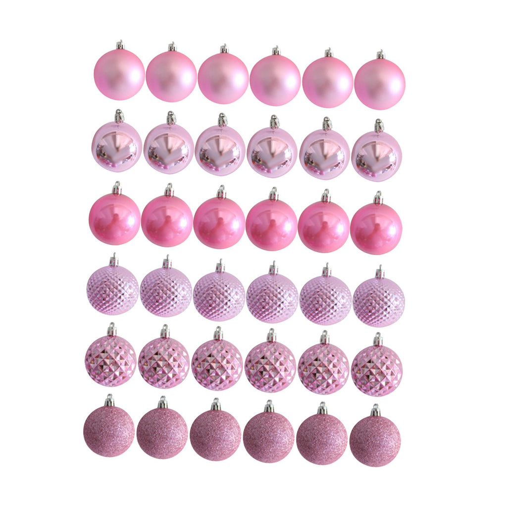 Maxbell 36x Christmas Balls Ornaments Hanging Pendants Decorative Bauble for Wreath Pink