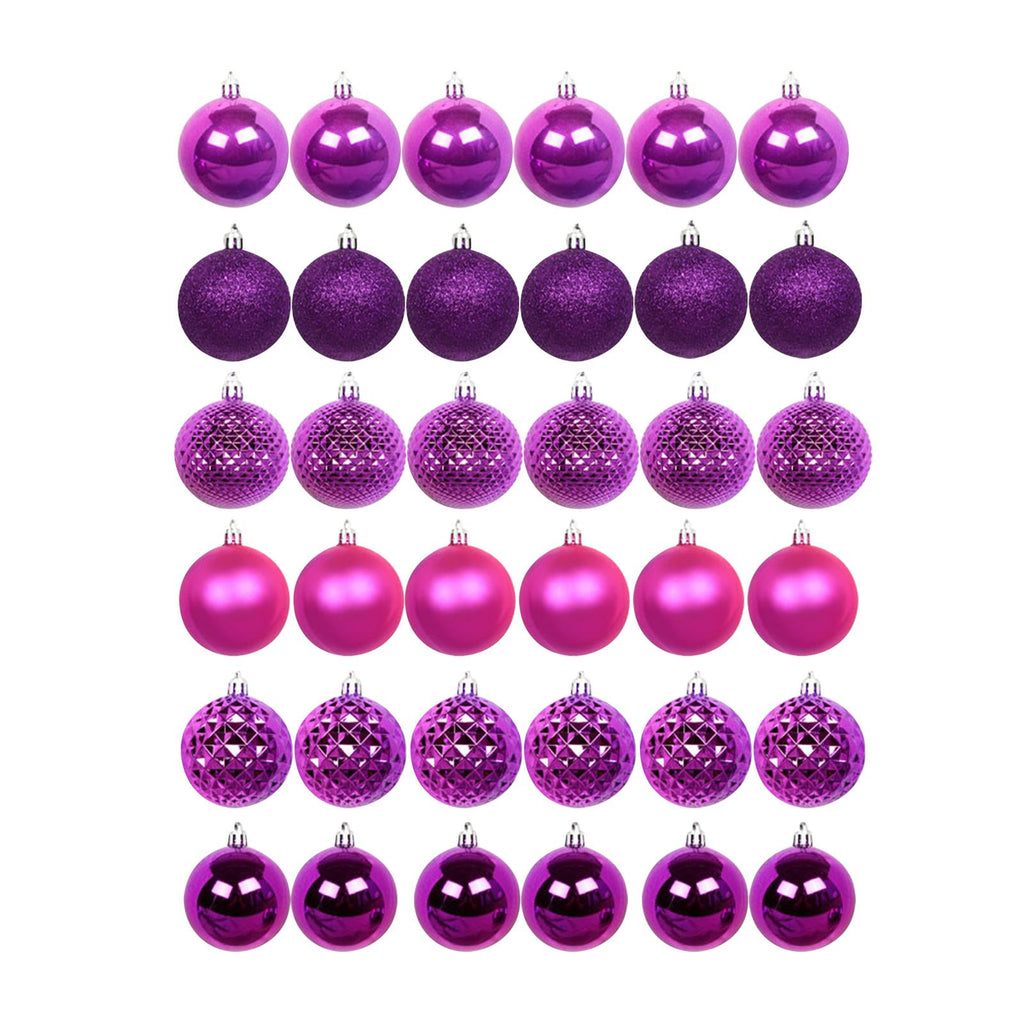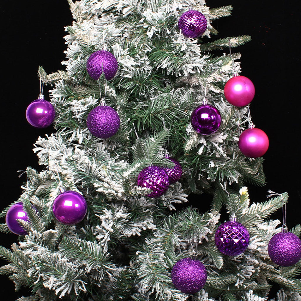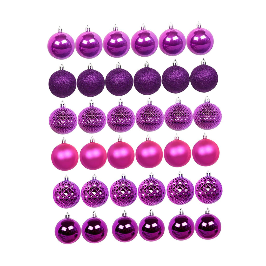 Maxbell 36x Christmas Balls Ornaments Hanging Pendants Decorative Bauble for Wreath Purple Rose Red