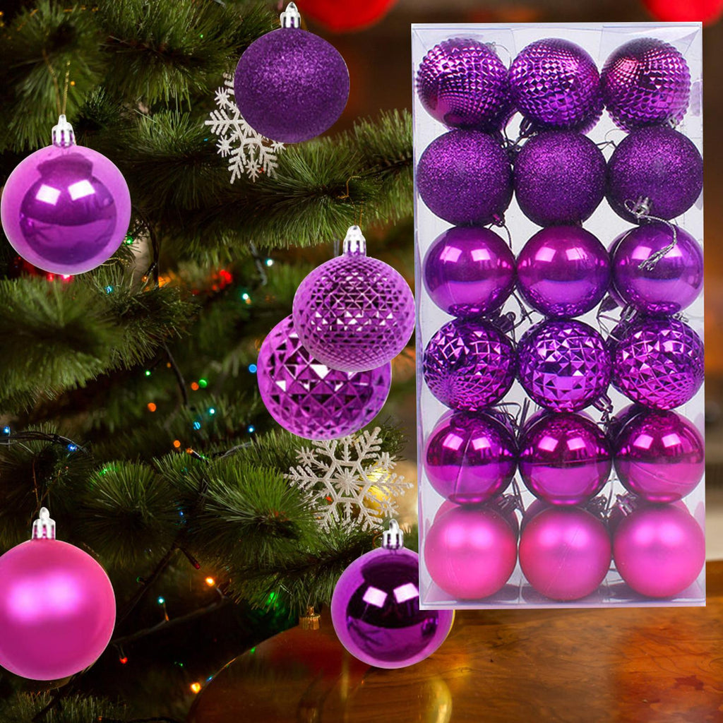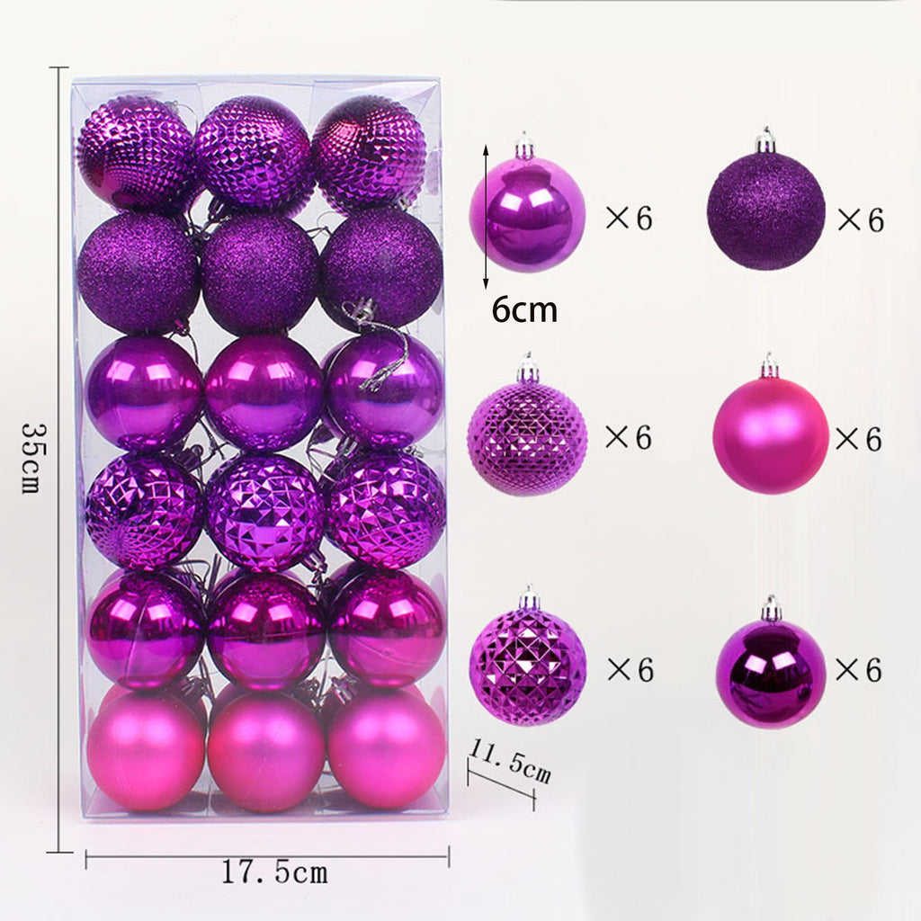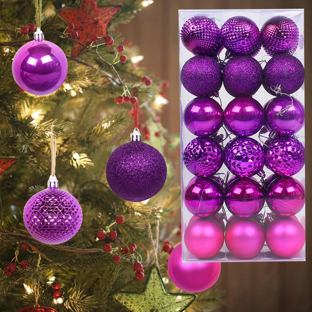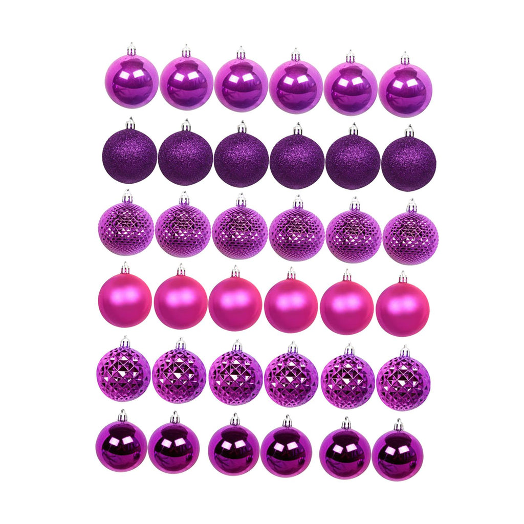 Maxbell 36x Christmas Balls Ornaments Hanging Pendants Decorative Bauble for Wreath Purple Rose Red