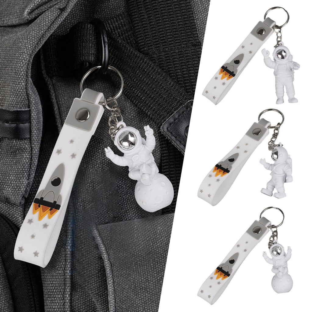 Maxbell 3Pcs Astronaut Keyring Bag Hanging Ornament Pendant Cartoon Wallet Decor Argent