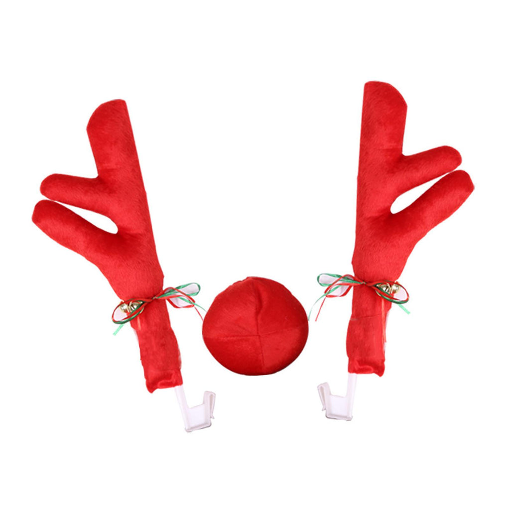 Maxbell 3Pcs Xmas Car Antlers Decoration front Grille for Truck Auto Red