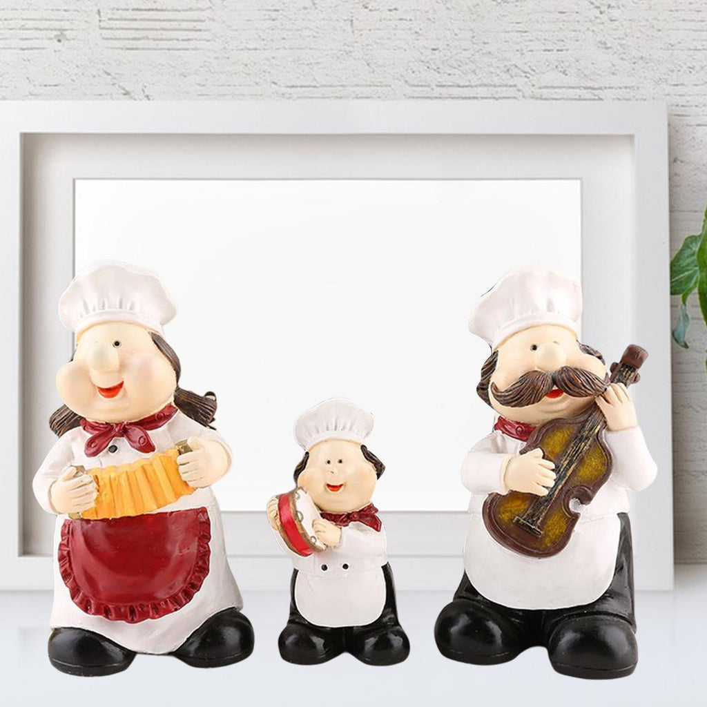 Maxbell 3x Chef Statue Figurines Sculpture Resin Ornaments Decorative Collectible