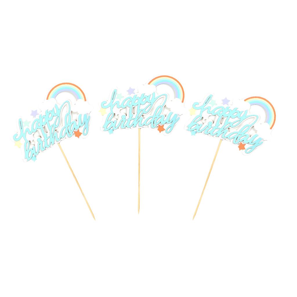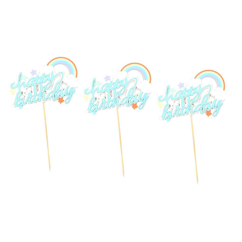 Maxbell 3x Glitter Cake Toppers Cupcake Pick DIY Cake Decor Party Favor Light Blue 2
