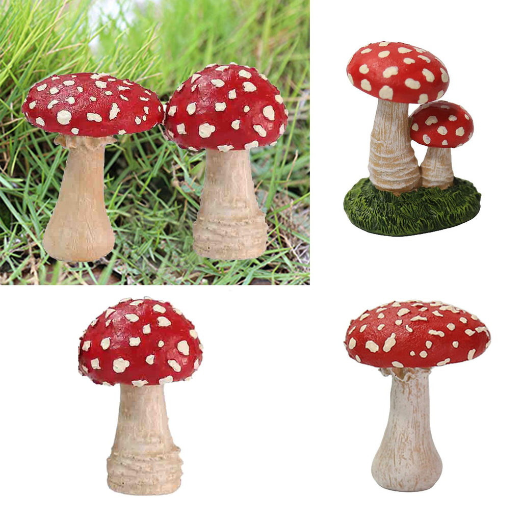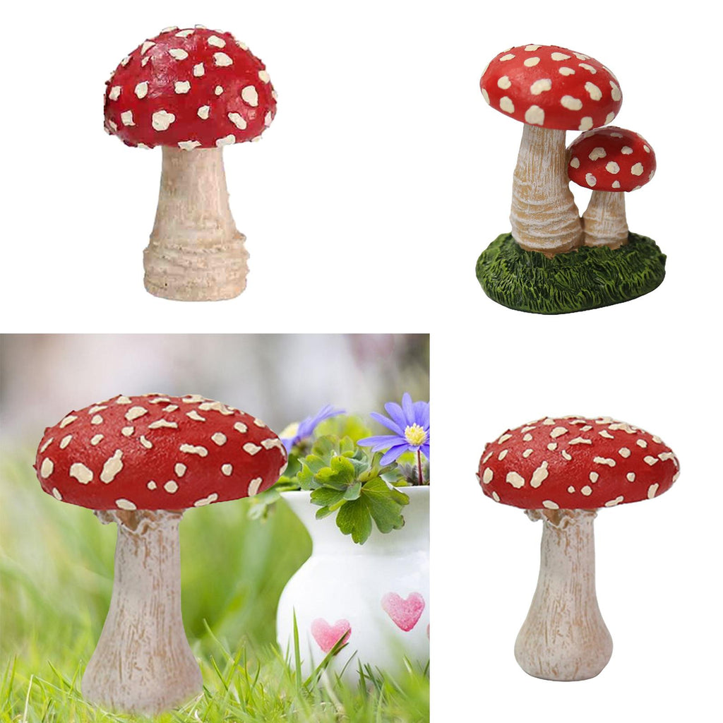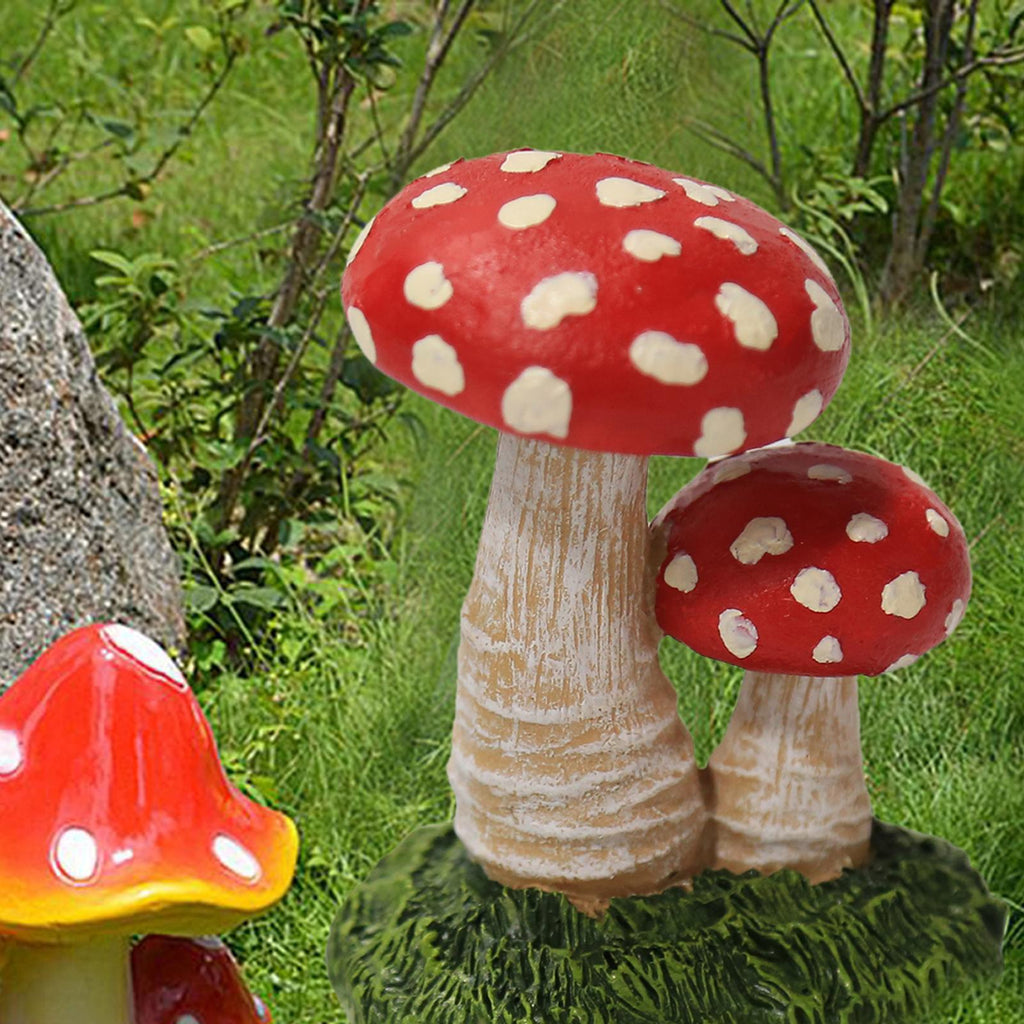 Maxbell 3x Mushroom Figure Yard Decoration Miniature Creative w/ Base for Garden