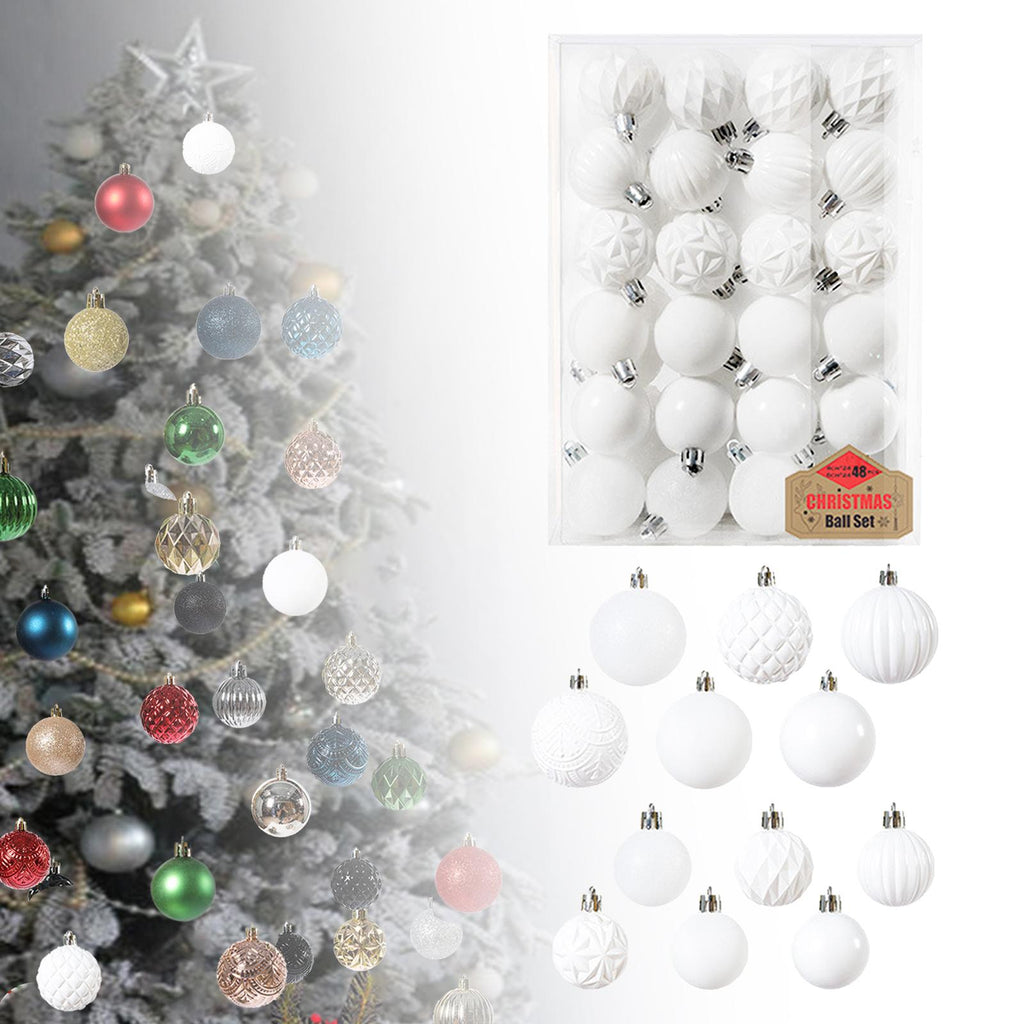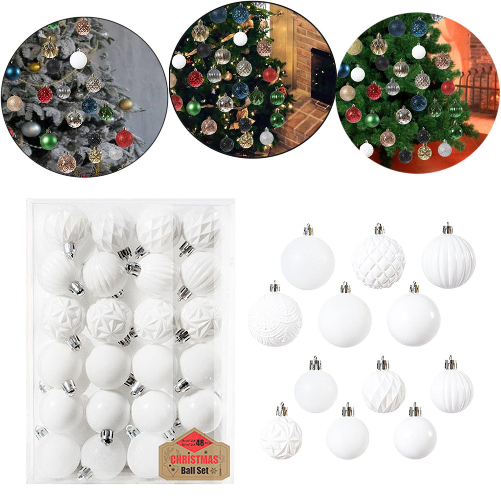 Maxbell 48 Pieces Xmas Tree Hanging Ornaments for Party New Year Decoration White