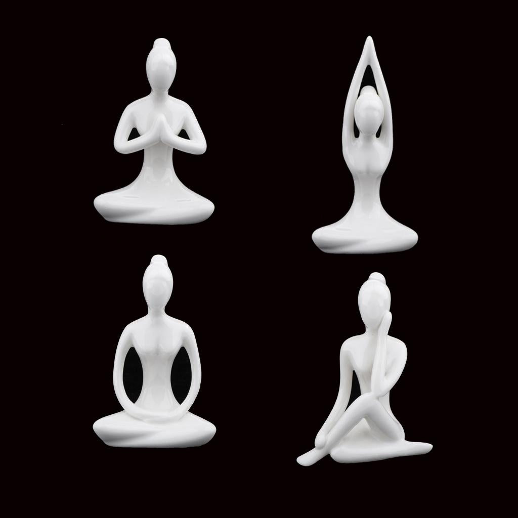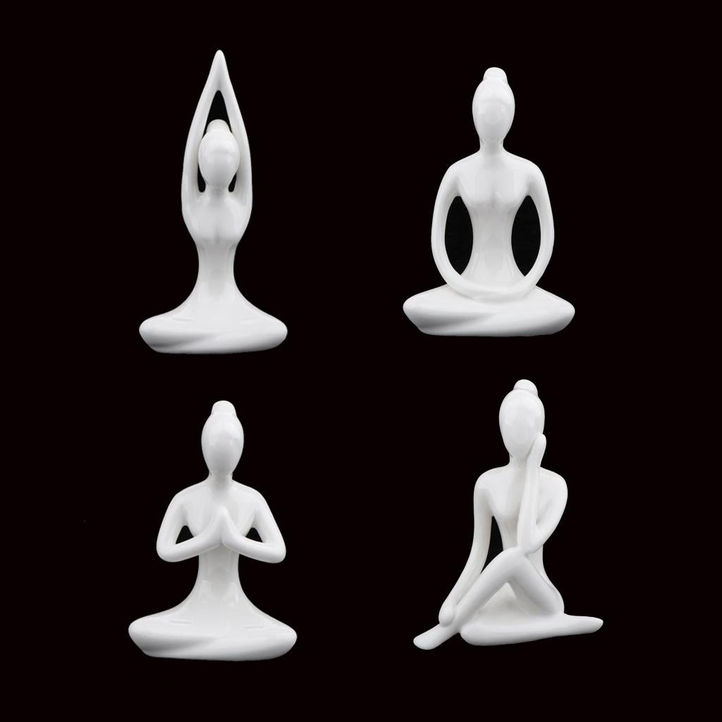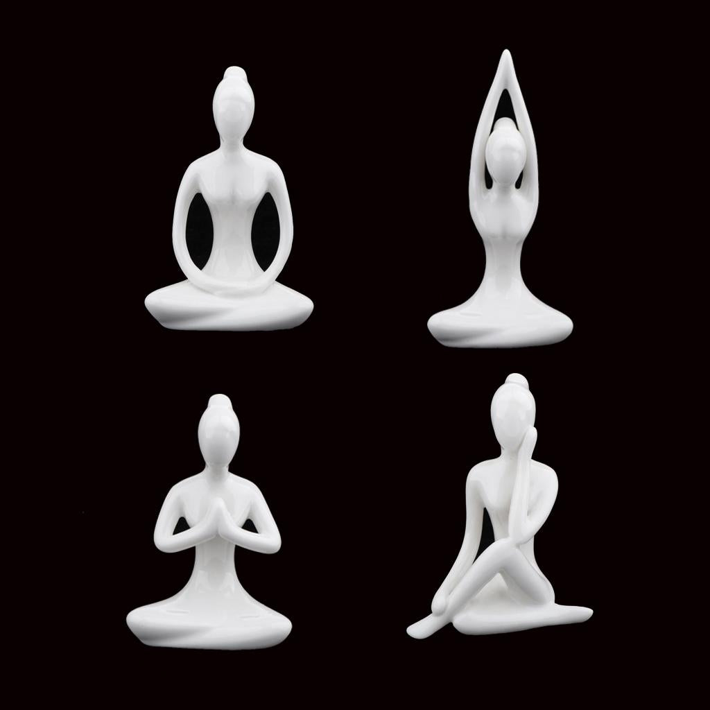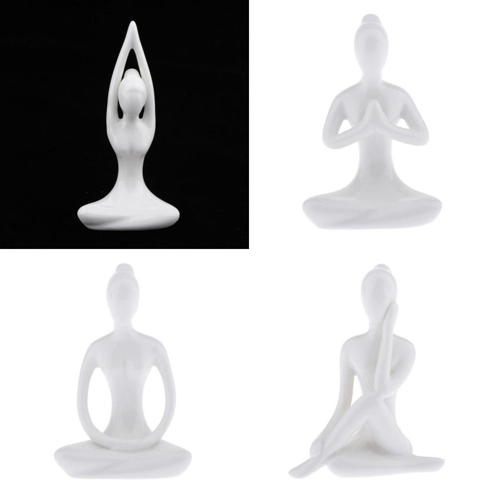 Maxbell 4Pcs Ceramic Yoga Figure Ornament Statue Sculpture Zen Garden Desk Decor