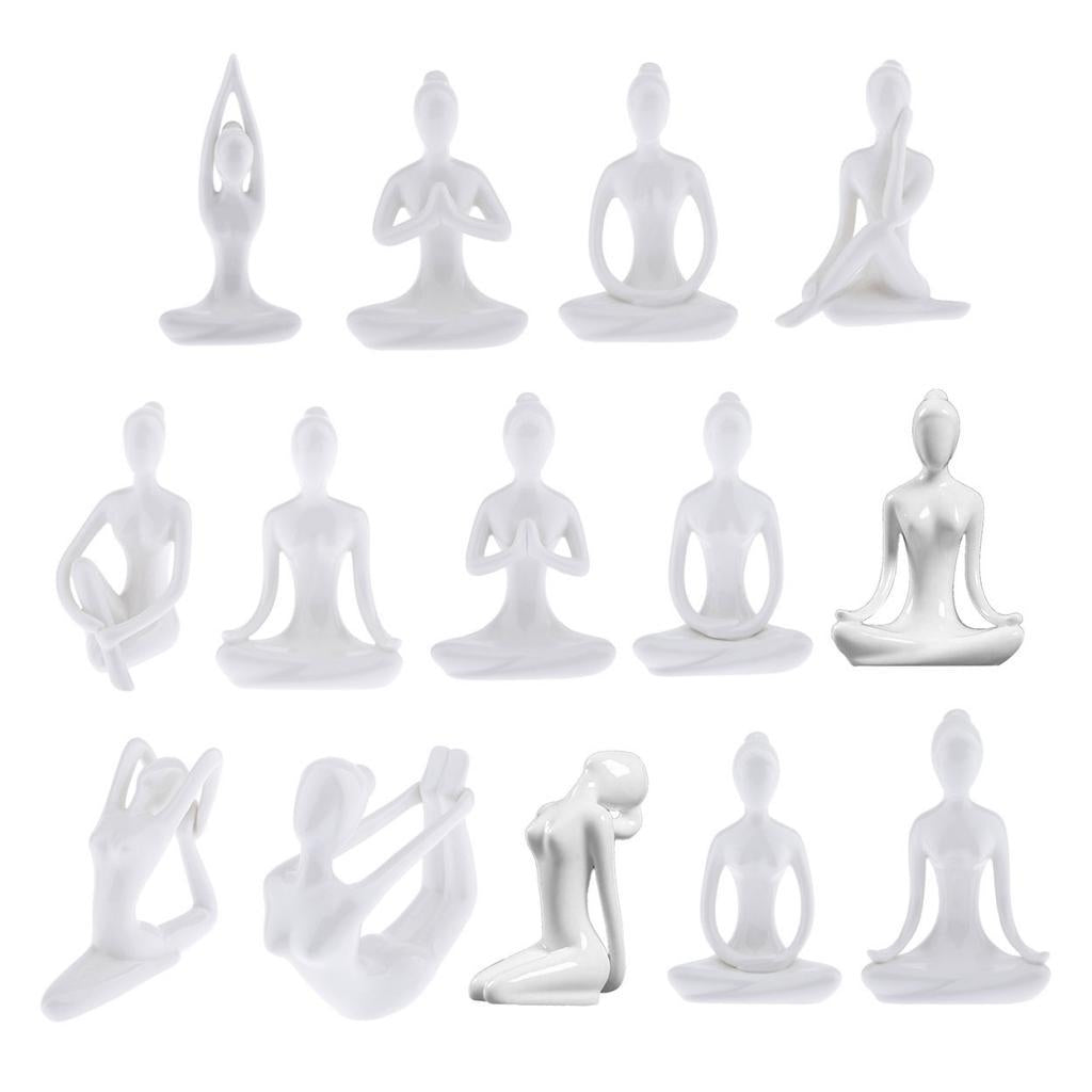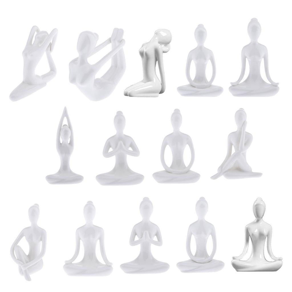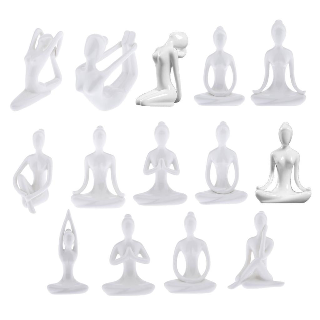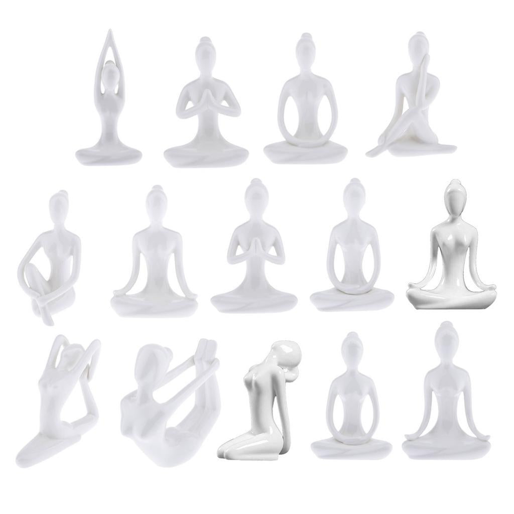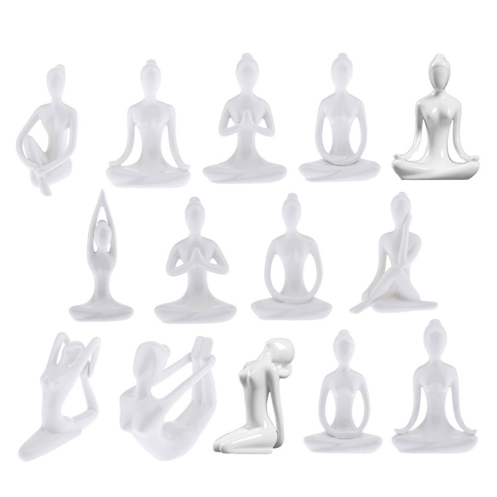 Maxbell 4Pcs Ceramic Yoga Figure Ornament Statue Sculpture Zen Garden Desk Decor
