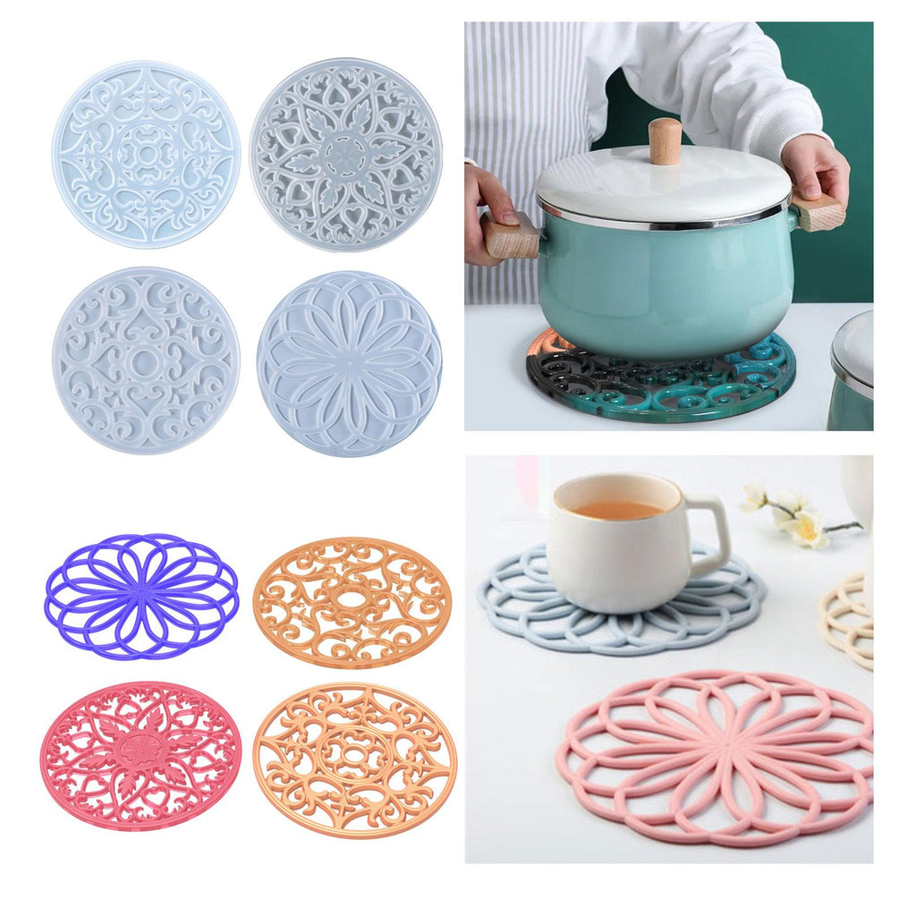 Maxbell 4Pcs Silicone Resin Casting Coaster Tools DIY Home Decor Crafts Handmade