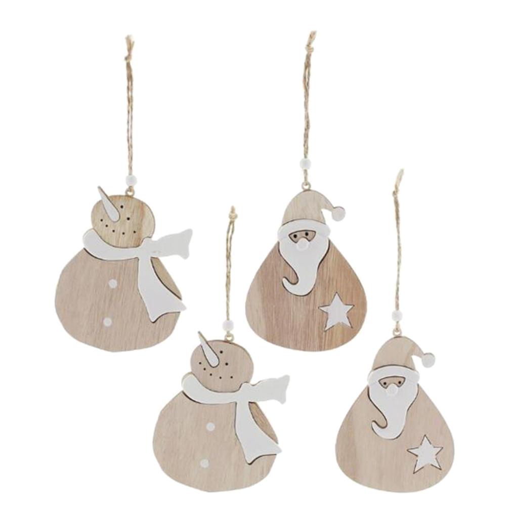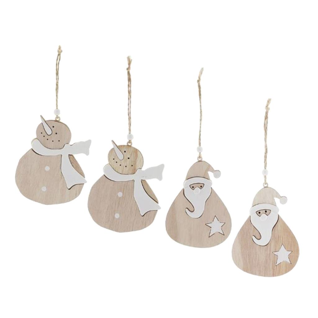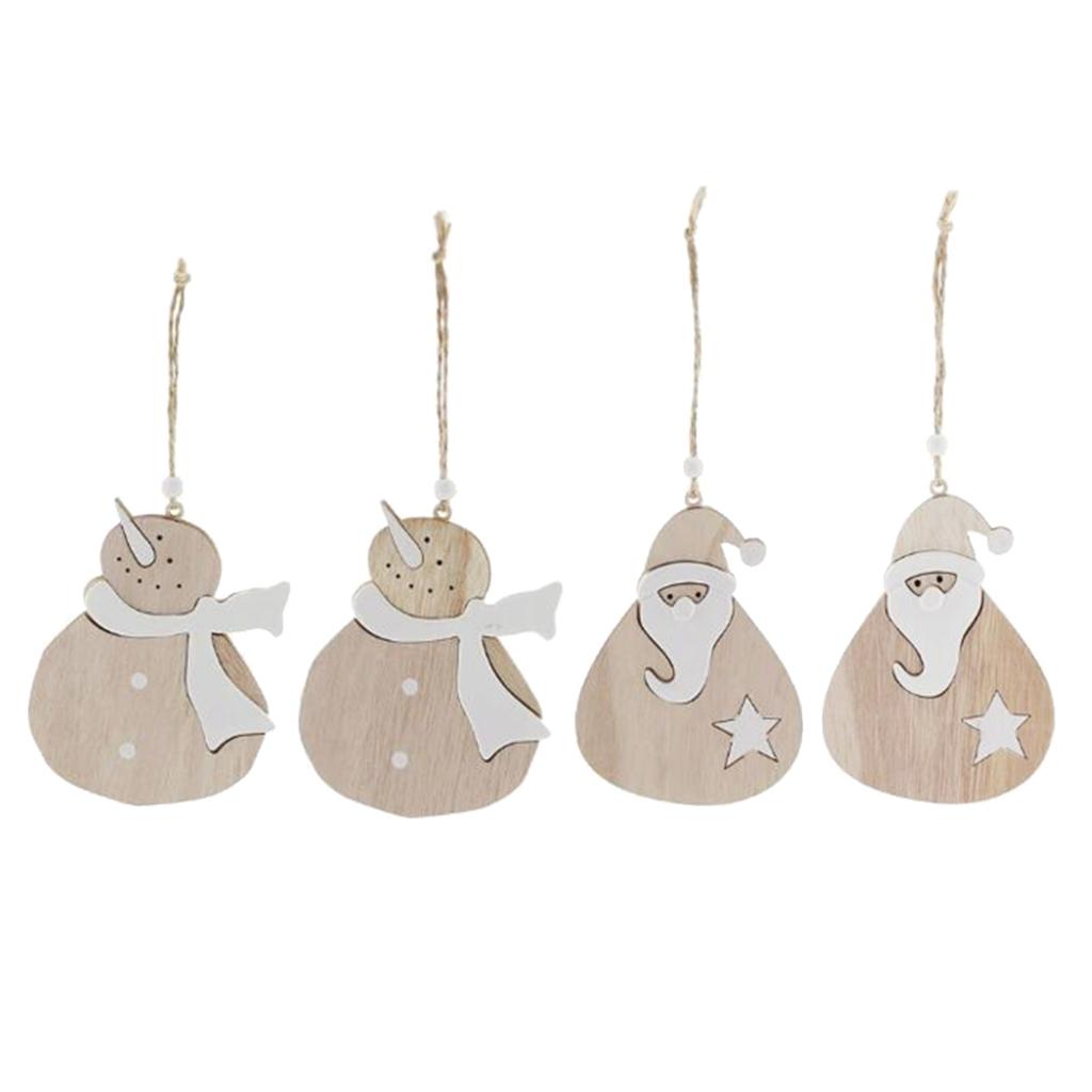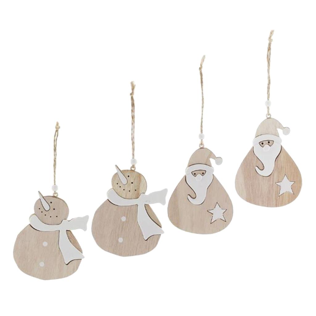 Maxbell 4pcs Wooden Christmas Tree Ornaments Decoration Santa Claus and Snowman