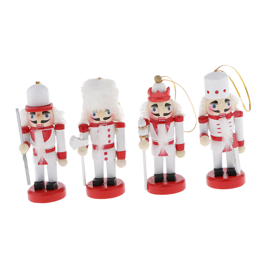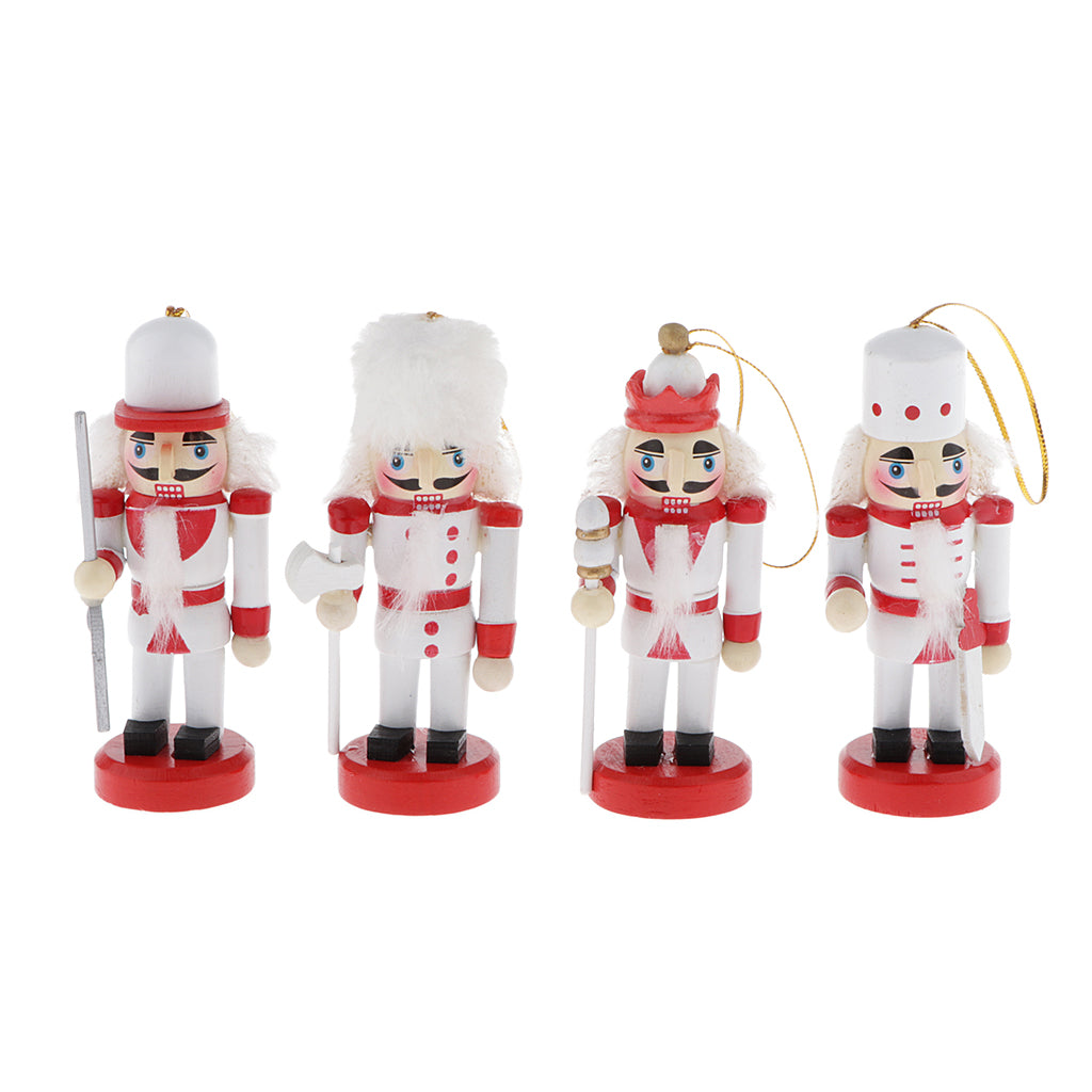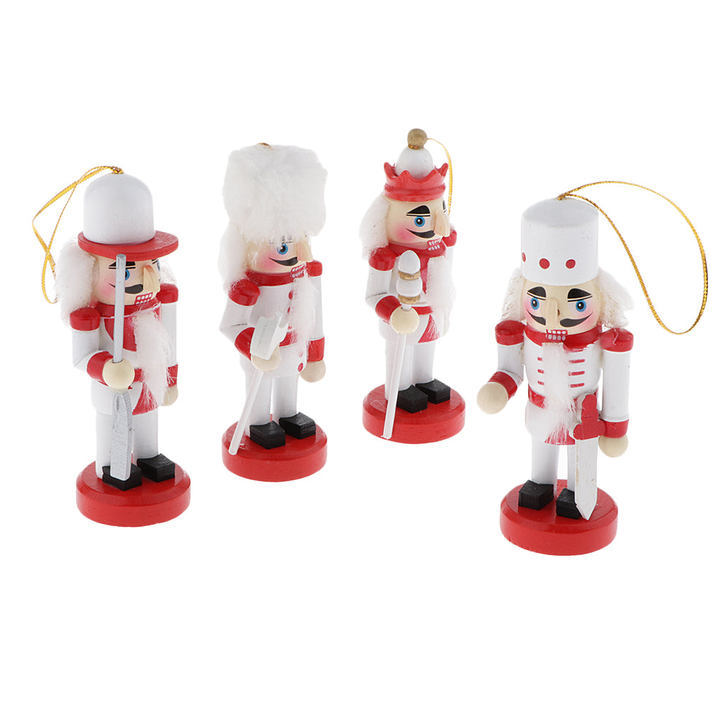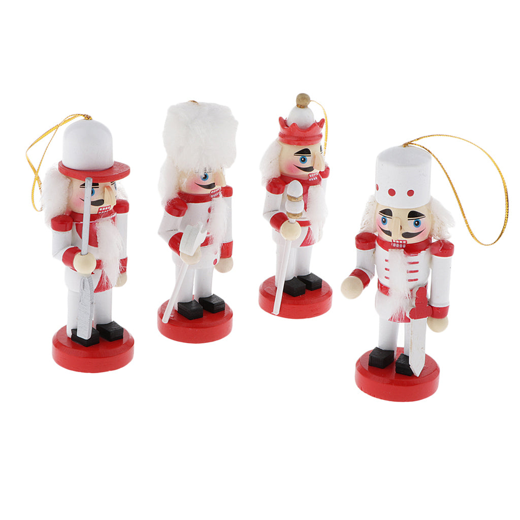Maxbell 4pcs Wooden Nutcracker Solider Figures Puppet Toy Christmas Ornaments Decor