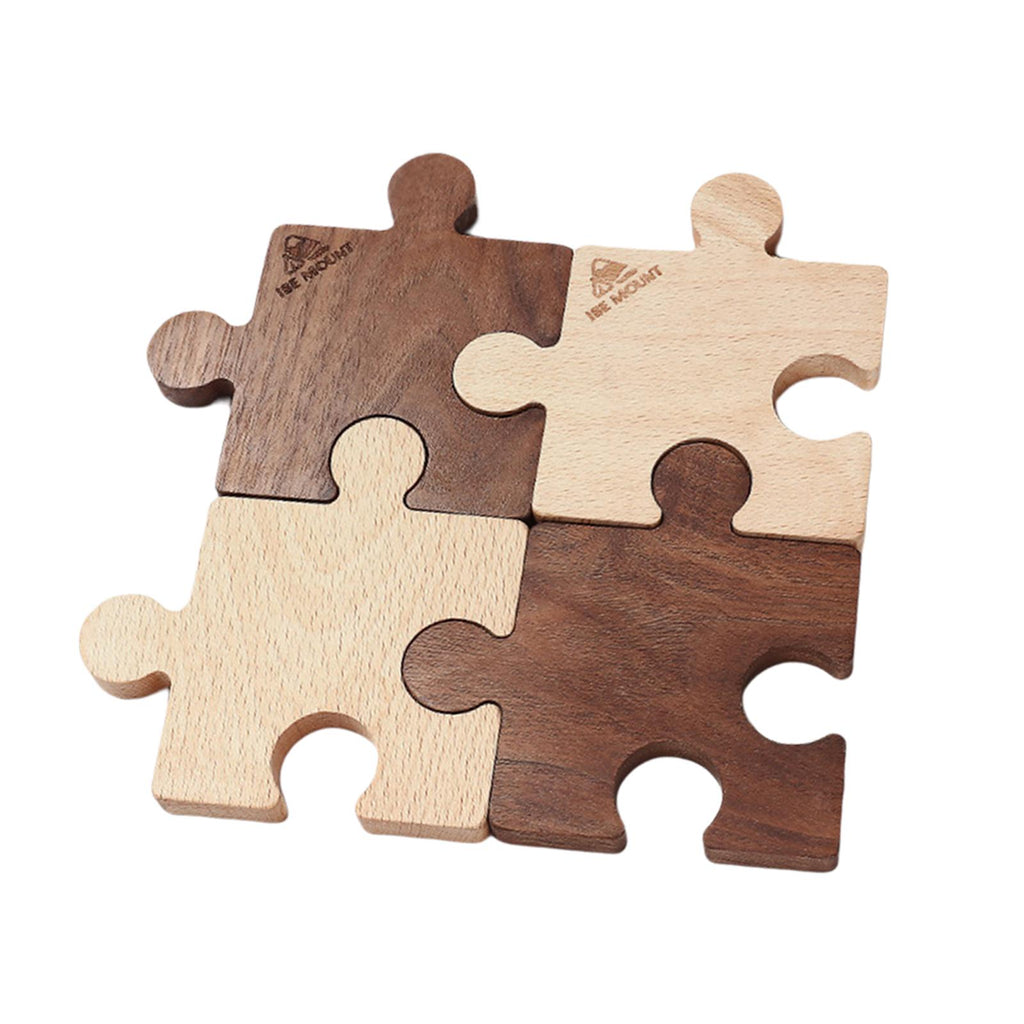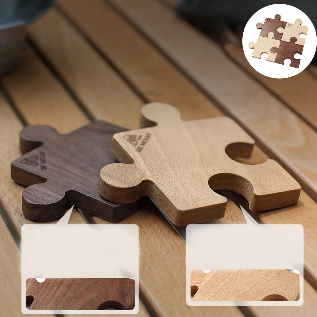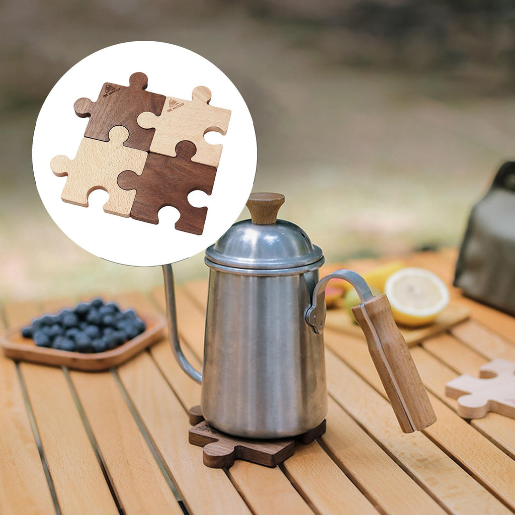 Maxbell 4x Wooden Coasters Jigsaw Puzzle Design Placemats Decor for Kitchen Home