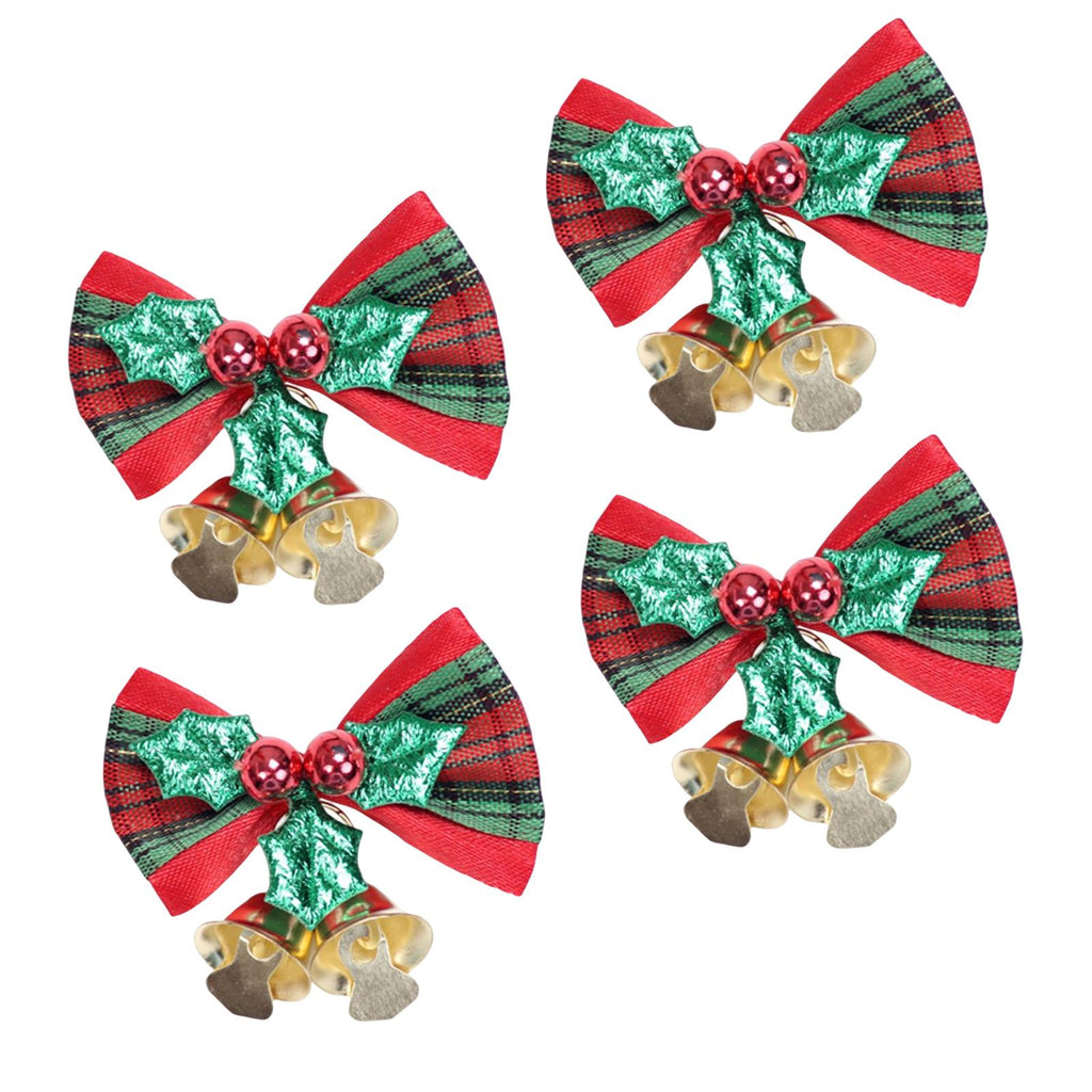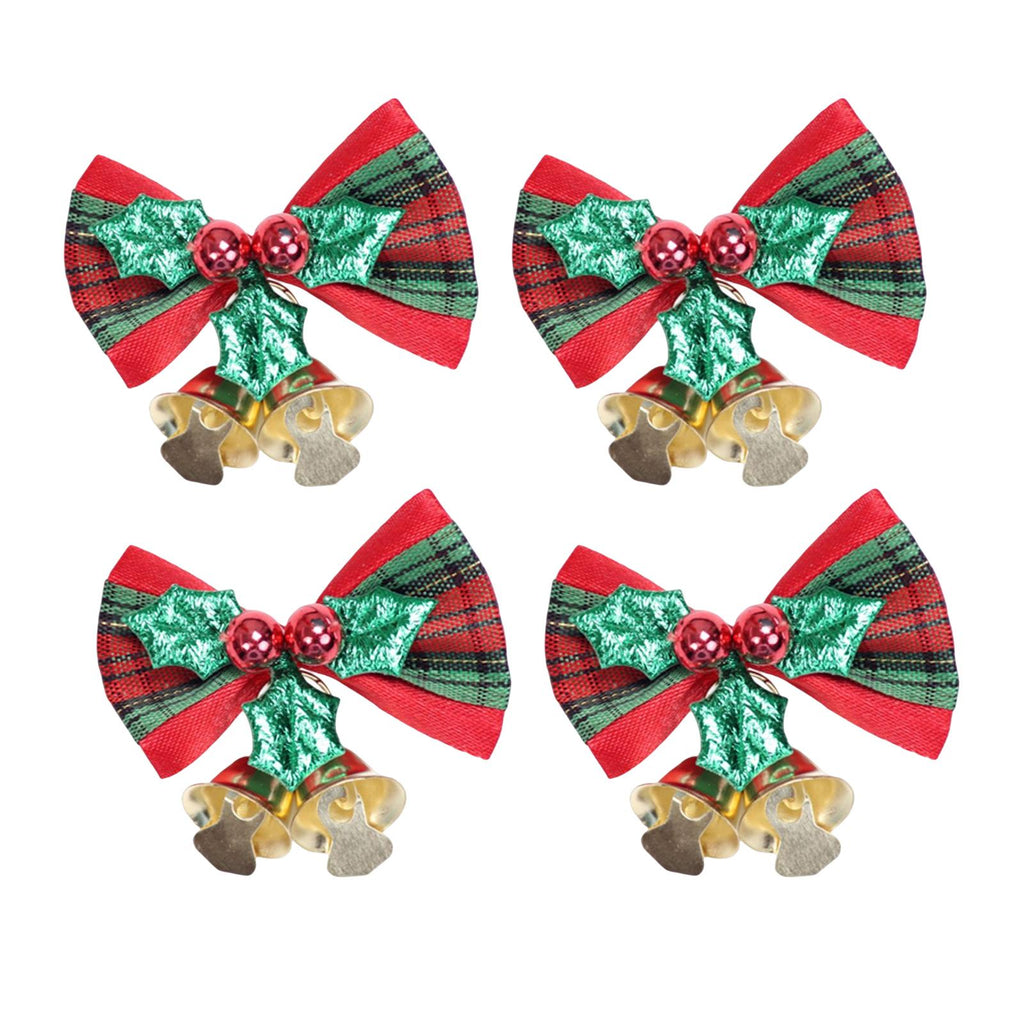 Maxbell 4x Xmas Tree Hanging Decoration Crafts Christmas Bow Bell Holiday Home Plaid Bow Green