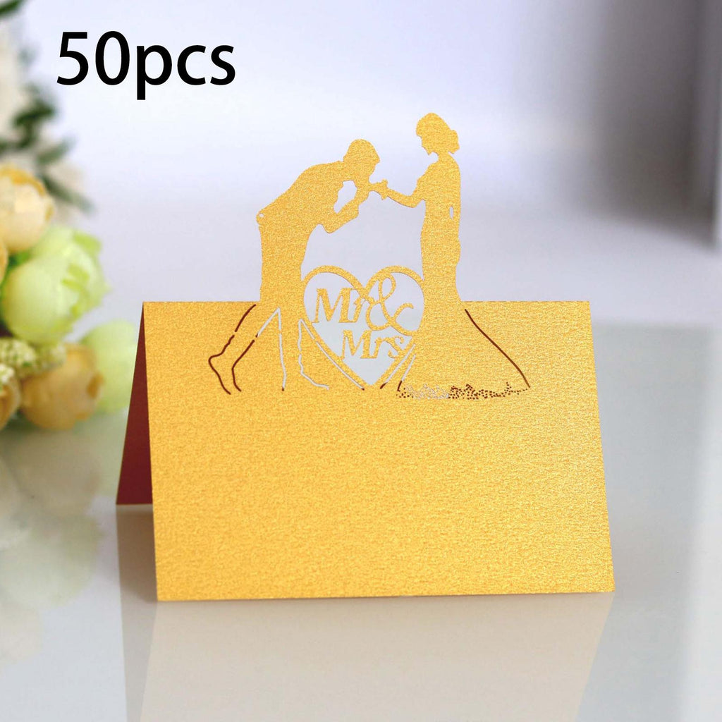 Maxbell 50Pcs Wedding Place Cards Mark Card Elegant for Restaurant Anniversary Decor Gold