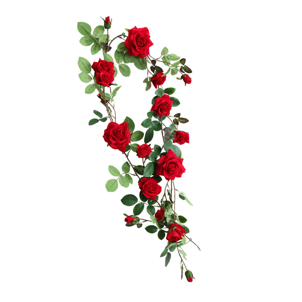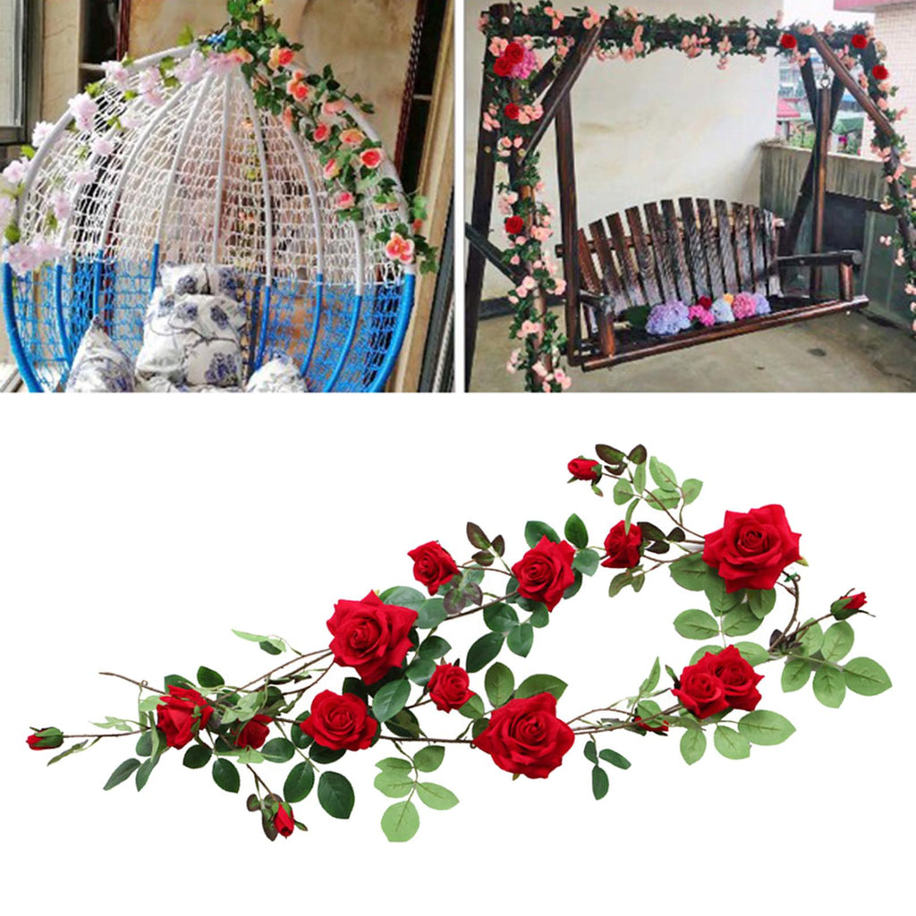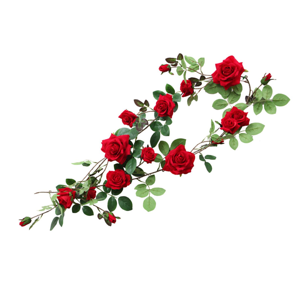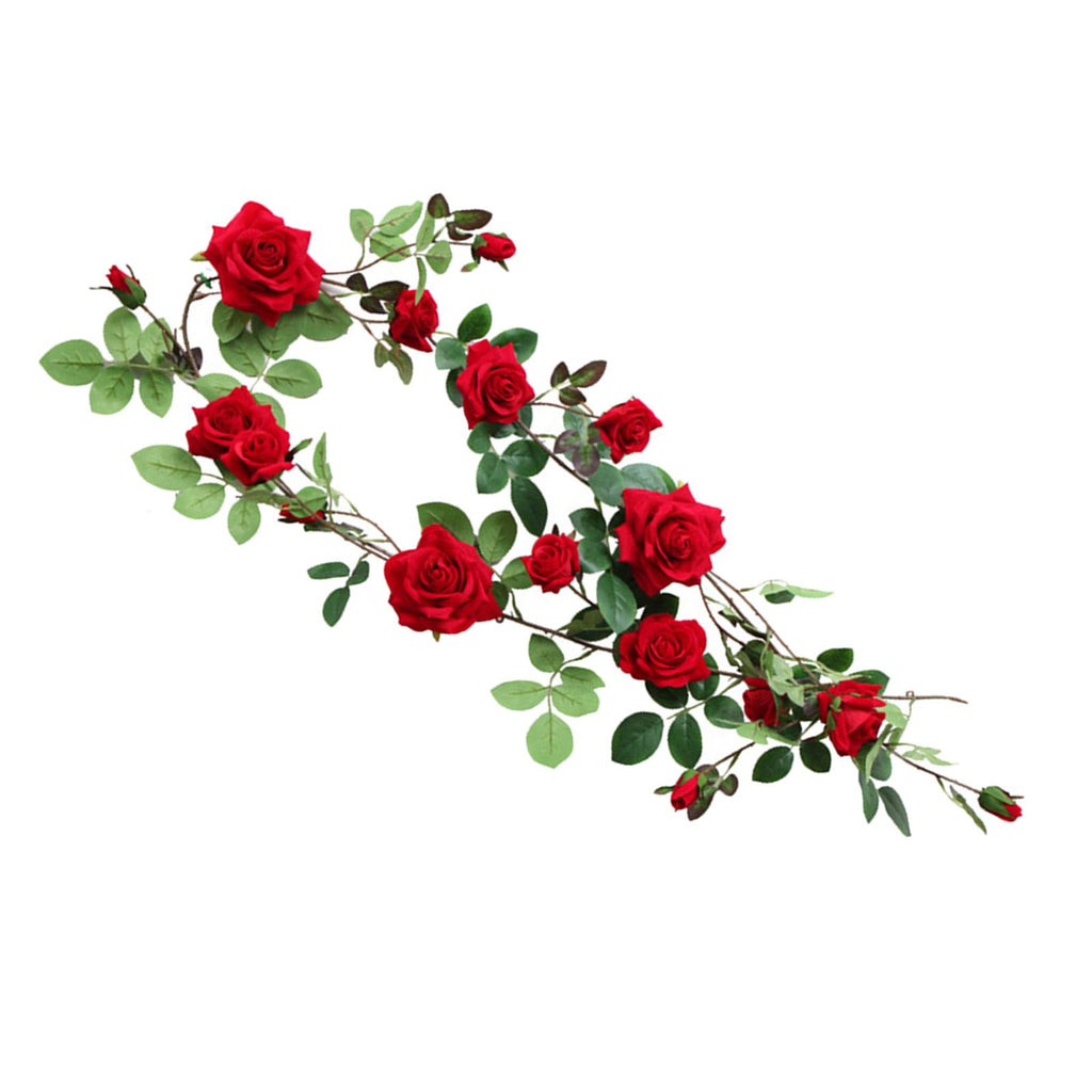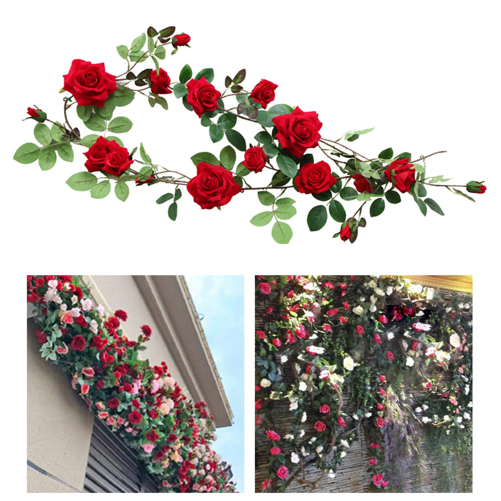 Maxbell 6ft Artificial Flower Silk Rose Leaf Garland Vine Home Wedding Garden Decors Red 11cm