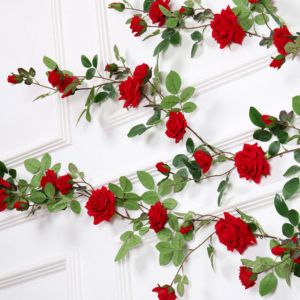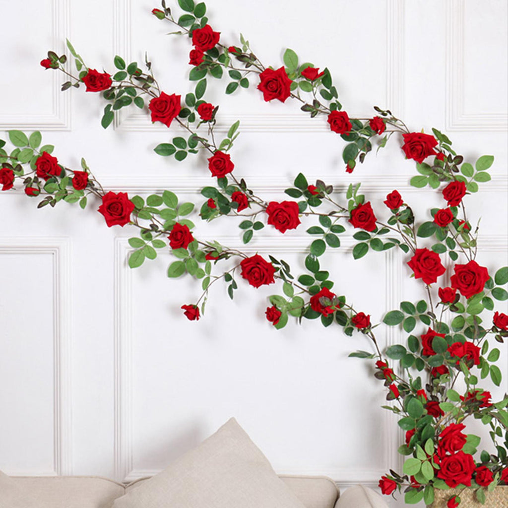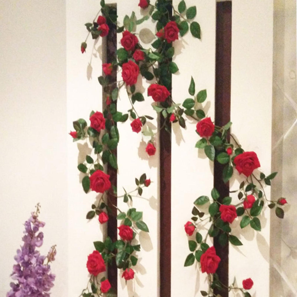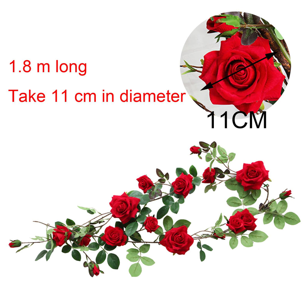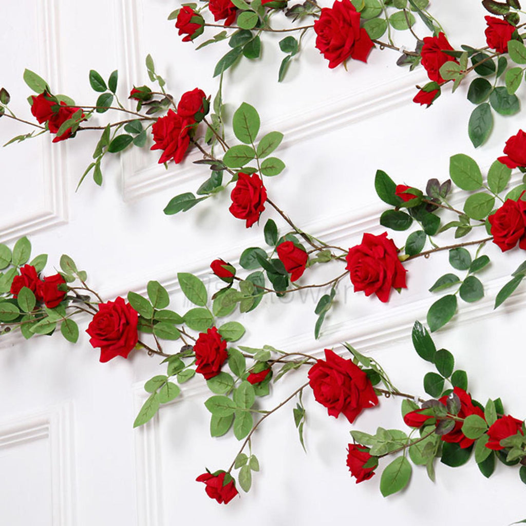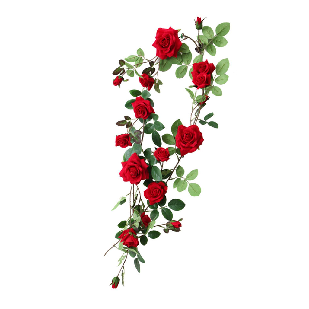 Maxbell 6ft Artificial Flower Silk Rose Leaf Garland Vine Home Wedding Garden Decors Red 11cm