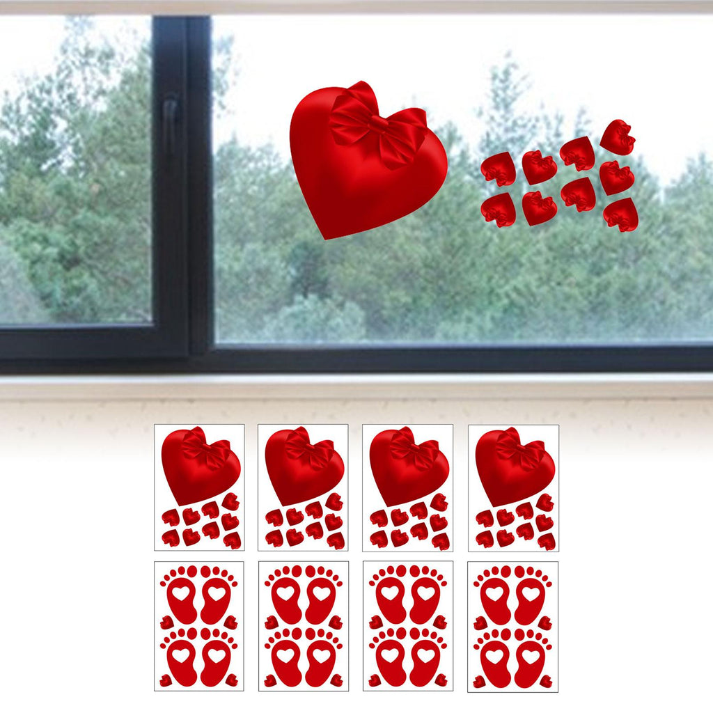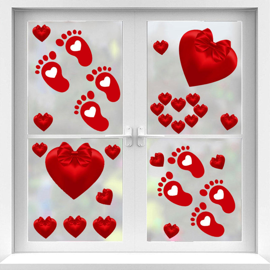 Valentine's Day Stickers: Includes a removable set of 8 Valentine's Day window stickers, including red hearts, footprints ,Valentine's day graphics